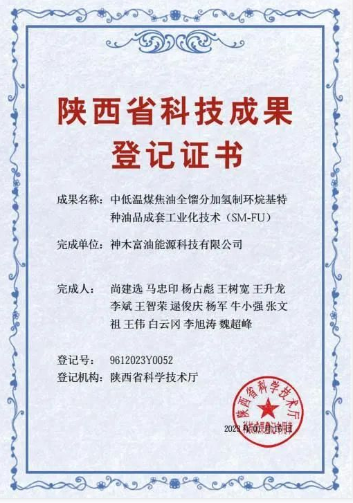 訪問次數(shù):3741近日,富油公司自主研發(fā)的“中低溫煤焦油全餾分加氫制環(huán)烷基特種油品成套工業(yè)化技術(shù)”榮獲了陜西省科學(xué)技術(shù)廳頒發(fā)的科技成果登記證書。... -