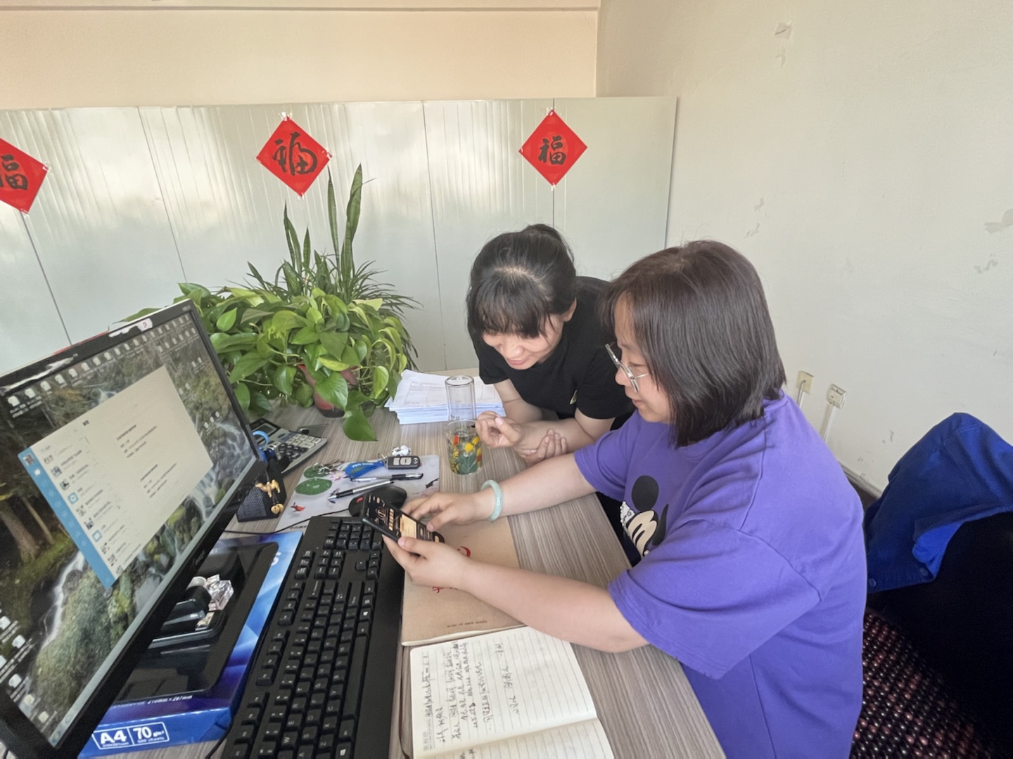 這是富油公司財務資產部員工在廣泛交流“鏈工寶”APP答題時的場景。