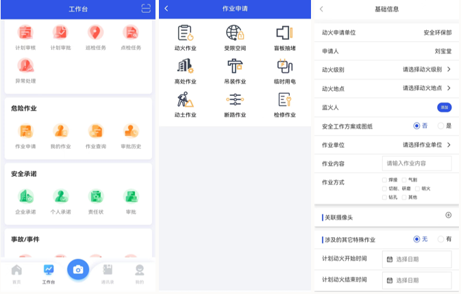 作業(yè)票管理是天元公司智慧安監(jiān)管理平臺(tái)中一項(xiàng)重要功能模塊,包括作業(yè)申請(qǐng)、作業(yè)查詢(xún)等功能,涵蓋了動(dòng)火作業(yè)、受限空間、盲板抽堵、高處作業(yè)、吊裝作業(yè)、臨時(shí)用電、動(dòng)土作業(yè)、斷路作業(yè)、檢修作業(yè)9類(lèi)作業(yè),作業(yè)票系統(tǒng)流程具體分為基礎(chǔ)信息、作業(yè)單位、現(xiàn)場(chǎng)確認(rèn)、化驗(yàn)分析、作業(yè)審核、作業(yè)驗(yàn)收6個(gè)步驟,實(shí)現(xiàn)了作業(yè)申請(qǐng)—審批—簽字—票證歸檔全過(guò)程電子化管理。