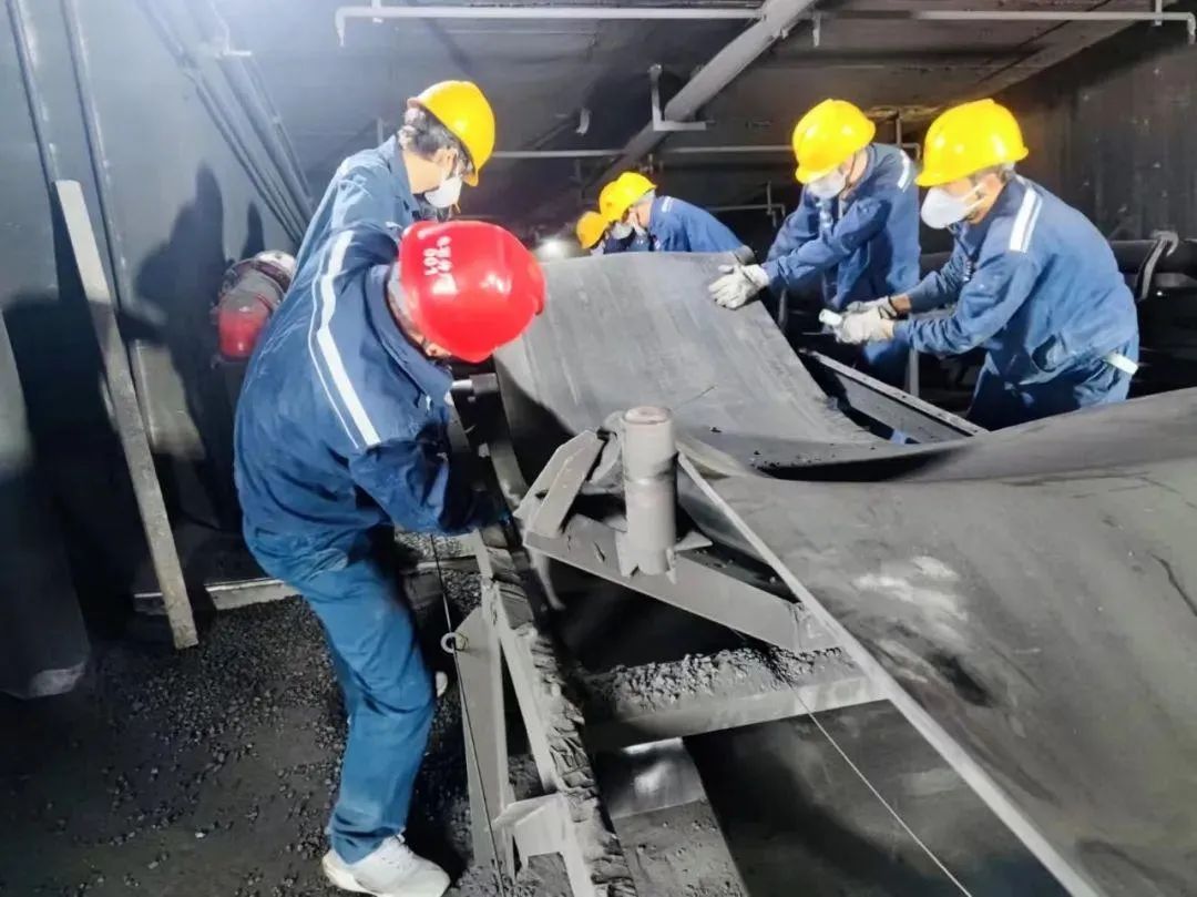 “一二!一二!”工作現場傳來了陣陣號子聲,維修工正在將新皮帶一端用卡子固定在舊皮帶一端,工段技術骨干緊緊拉住舊皮帶一端,皮帶機帶動著新皮帶穩穩地向上傳送。工作人員聽從指揮、統一行動,分廠黨員干部積極投身檢修,全程參與、監督、指導更換作業,及時協調解決皮帶更換過程中發生的各種問題。經過十個多小時的緊張作業,J5皮帶的安裝更換工作順利完成,經調試,皮帶運行穩定,現已順利投入使用。