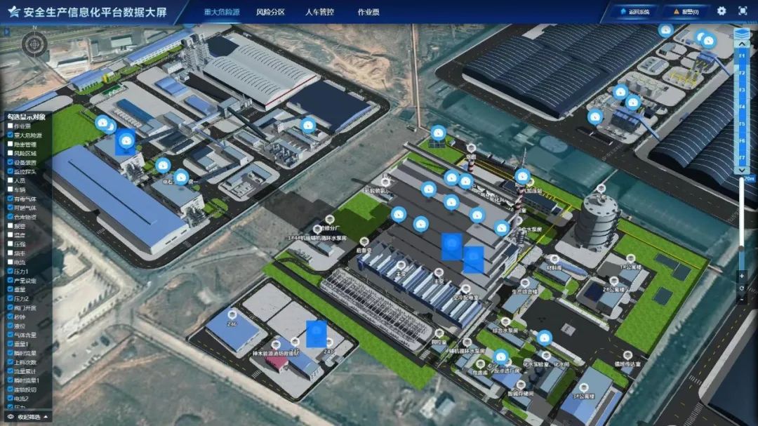 現該系統已完成智能3D”建模并正式導入能源公司“安全生產信息化管理平臺”。該平臺基于化工安全管理理念,將線下業務融合進線上系統,并圍繞風險分級管控、隱患排查體系和化工過程安全,建設了重大危險源監測預警系統(合并有毒可燃氣體監測預警)、風險隱患雙預防管理系統、安全生產全流程系統、以及人員在崗在位管理系統,實現了多種業務的信息化管理。管理人員可通過鳥瞰、“3D”視圖、局部特寫等形式,對生產線、工藝流程、生產設備進行可視化管控。