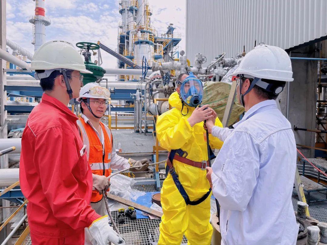 高榜是一名年輕的黨員,作為裝置一名技術骨干、業務能力高、責任心強,平時性格靦腆,不太愛說話。在此次大修中他主要負責的是環烷基油中心1323裝置的工藝交出以及后續的技改檢維修配合工作。在大修現場,高榜正嫻熟的指導現場作業人員在1323加熱爐加裝盲板,對票證流程規范的檢查,環境安全的檢查確認等一系列工作,手里的電話還在不停的響,“高工,快來這里,給我們指導一下”、“高工,快來泵這,看看...”。當工作人員想拍下這一幕時,他害羞的擺了擺手說:“不用了”。高榜同志扎根富油發揮模范帶頭作用,以身作則處處詮釋黨員本色。