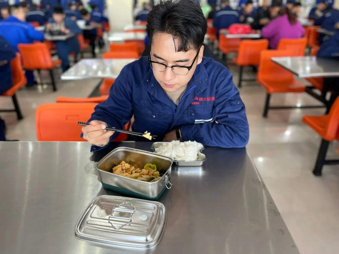 “能源公司工會給我們發的不銹鋼保溫飯盒真實用,以后去食堂打飯再也不怕飯菜涼了!”“疫情防控期間,自帶發的飯盒,吃著放心,感覺更暖心。”職工郭義軒在餐廳就餐時說道。