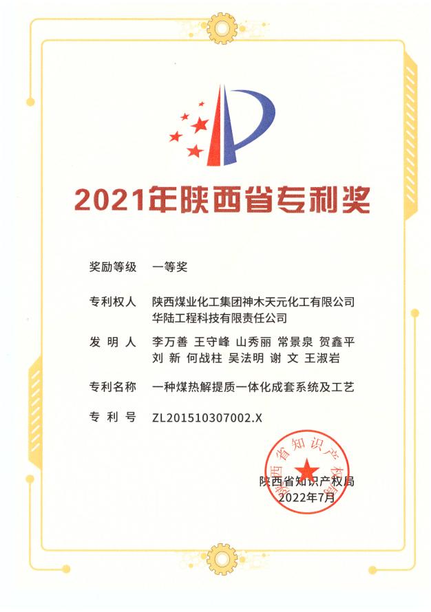 近日,從陜西省知識產權局獲悉,神木煤化工天元公司“一種煤熱解提質一體化成套系統及工藝”發明專利榮獲2021年陜西省專利獎一等獎。