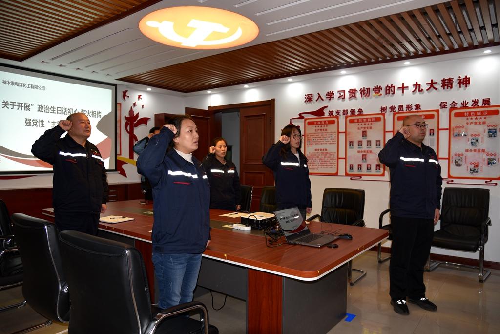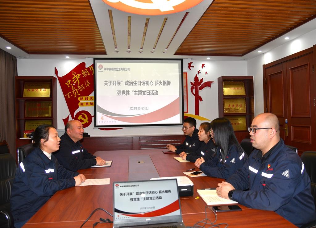 1031日,神木煤化工泰和公司綜合黨支部在四樓黨員活動室,舉行政治生日話初心,薪火相傳強黨性主題黨日活動,活動由支部書記葉萍主持,支部全體黨員參加了活動。