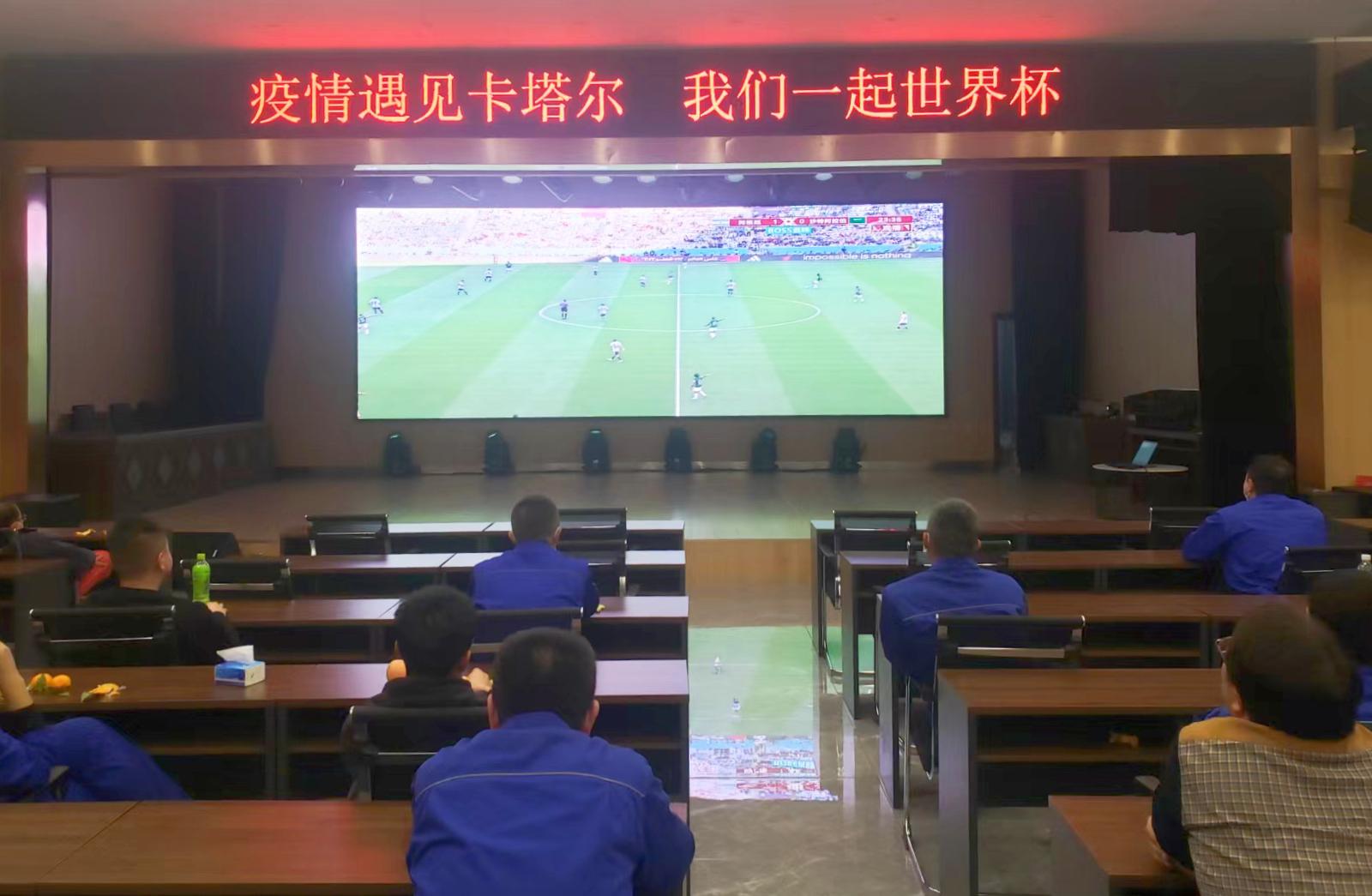 借助這一全世界關注的焦點事件,連日來,富油公司黨群工作部經過重重核酸篩查后,邀請廠區廣大球迷員工們相約在公司多功能廳三樓一起觀看世界杯,超大屏幕、畫質高清、全程直播、可樂花生、瓜子水果,全面豐富員工們的業余生活,添加生活樂趣,緩解疫情封閉式管理下新老員工的心理壓力和負面情緒。
