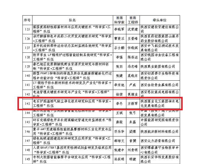 奮進陜煤:喜報!神木煤化工電化公司入選2023年度秦創原“科學家+工程師”隊伍名單