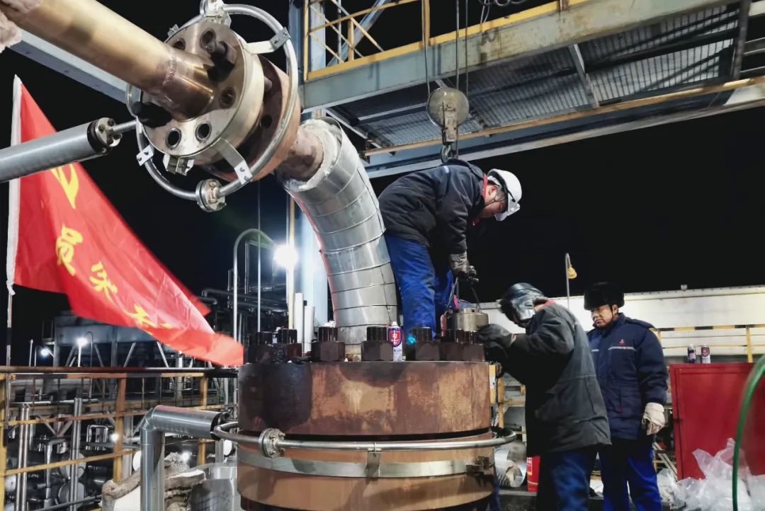 在神木煤化工富油公司17萬噸/年中低溫煤焦油全餾分加氫多產(chǎn)中間餾分油工業(yè)示范裝置反應(yīng)換劑檢修現(xiàn)場,一句句承諾鏗鏘有力,黨員們帶頭查管線、改流程、鉆人孔、清洗換熱器、清理更換塔盤、機泵等等,哪里有臟活、苦活、累活,哪里就活躍著他們的身影。他們充分發(fā)揮先鋒模范帶頭作用,始終堅守在檢修一線,用專注、嚴(yán)謹(jǐn)、細(xì)致,埋頭工作的身影在裝置區(qū)形成一道靚麗的風(fēng)景線。