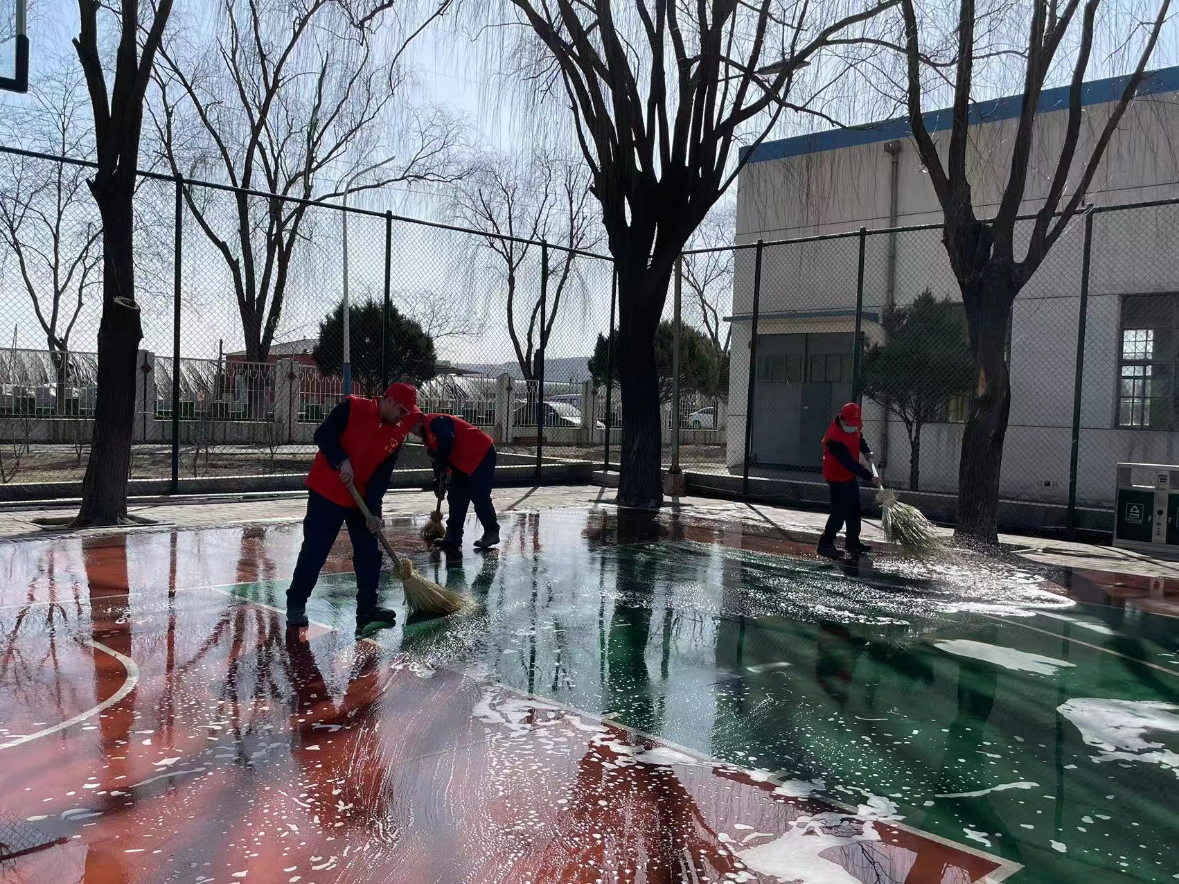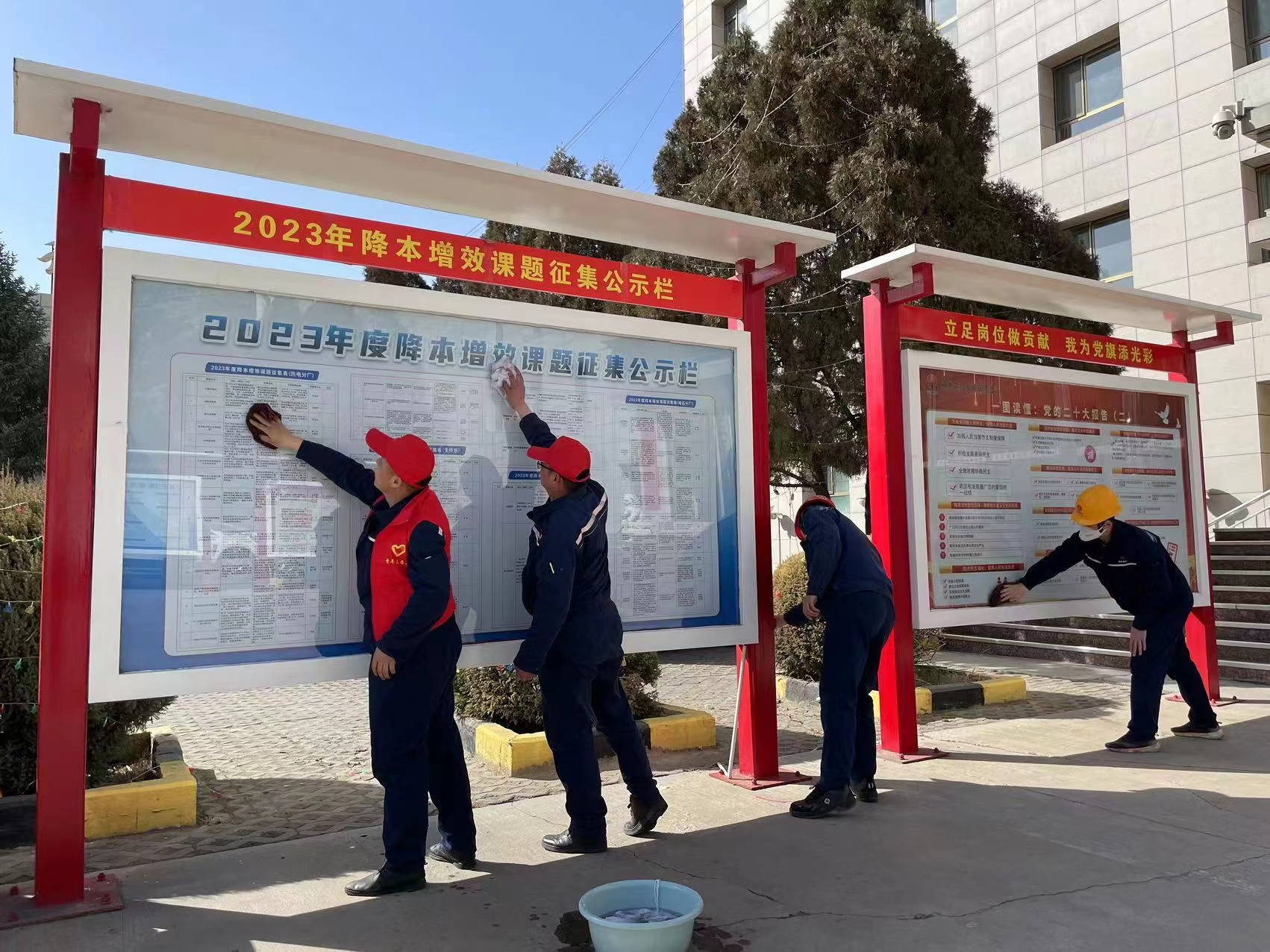 他們有的正在精心為職工免費理發、有的清理廠區花園的各類垃圾、有的正在和籃球場地面的積灰“較勁”、有的正在為宣傳欄“清理擦身”、有的正在為蓮品苑“沐浴洗禮”…