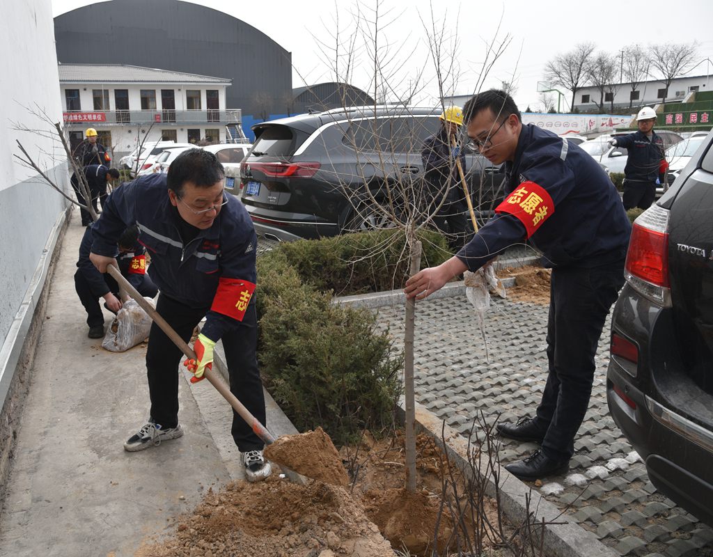 植樹環節,志愿者們手持鐵鍬,個個干勁十足。有的或三五人一隊,有的或兩三人一組,按照栽苗、扶苗、澆水、培土等植樹規范程序,密切配合,認真做好各環節銜接,有的甚至為了栽植一棵樹用尺子來測量,大家你來我往,爭先恐后,比質量、比速度、比干勁,花壇前、停車場里到處都是忙碌的身影和歡快的笑聲,用自己的實際行動踐行著“我勞動我光榮,我奉獻我快樂”的新時代雷鋒精神。經過緊張有序地勞動,一棵棵茁壯的樹苗在公司辦公樓四周“安家落戶”,為初春增添了一抹新綠。
