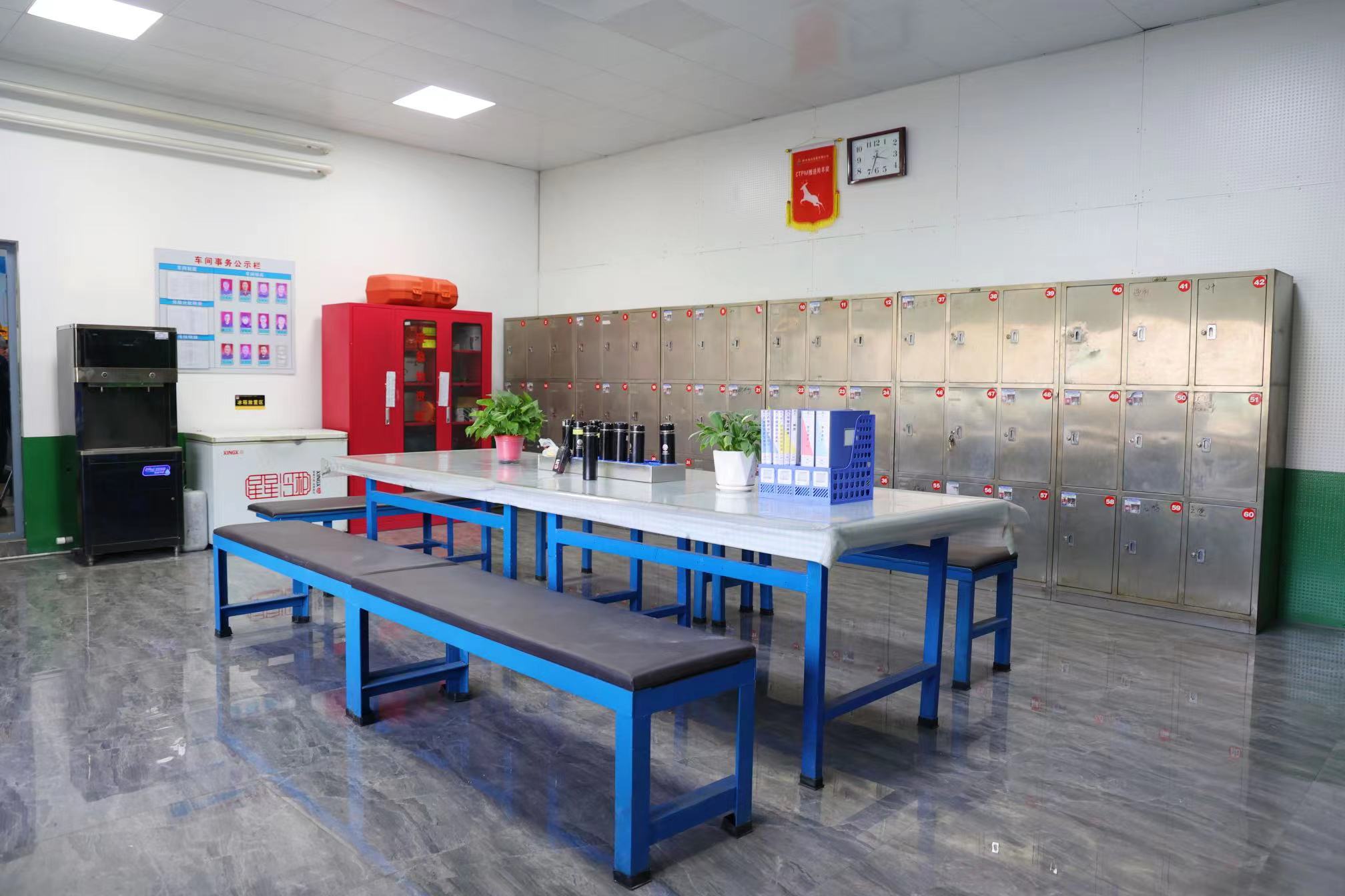 改造后的休息室窗明幾凈、桌椅整齊劃一,綠植和盆裝花朵映襯著如“家”般溫馨,右側(cè)雪白的墻壁是清晰醒目的紅黑相間形象圖標(biāo),墻上鮮紅的羚羊旗激勵(lì)著員工,在日常工作中,唯有持續(xù)不斷的努力創(chuàng)造,才能有所收獲。