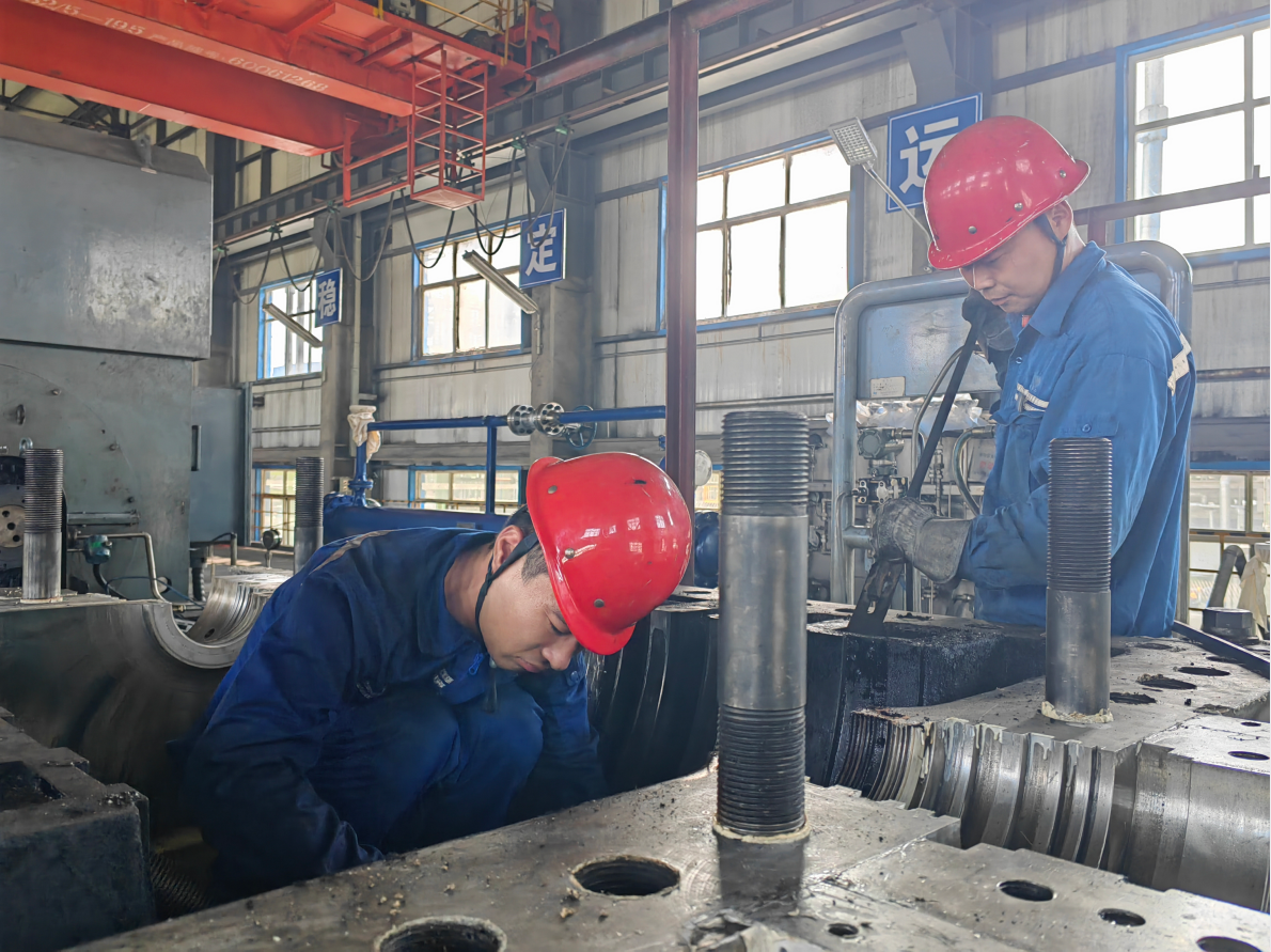 “大修”這個詞,對于化工人來說具有不同的意義,也是鉗工班一年中最繁忙的時候。2022年的大檢修項目多、工期緊、任務重,承包隊伍多、立體交叉作業多。班組根據歷年大修經驗,提前做了充分的準備。在檢修過程中,班員憑借自身專業的技能水平合力攻堅破難題,全力以赴搶時間、趕進度、抓質量,為公司提前完成年度大修各項任務贏得了時間、創造了良好條件。2022年9月,鉗工班接到制氫車間T2201入口500mm管線更換任務,如果不能更換完成,直接影響到裝置平穩運行。在檢修過程中,因更換管線為帶壓管線且法蘭螺栓咬合嚴重難拆卸,鉗工班人員充分發揚不怕累、不怕苦的精神,佩戴著空氣呼吸器,在狹小的空間內,使用液壓螺栓拆除器進行作業……最終,在大家的共同努力下,歷經24小時,圓滿完成搶修任務。