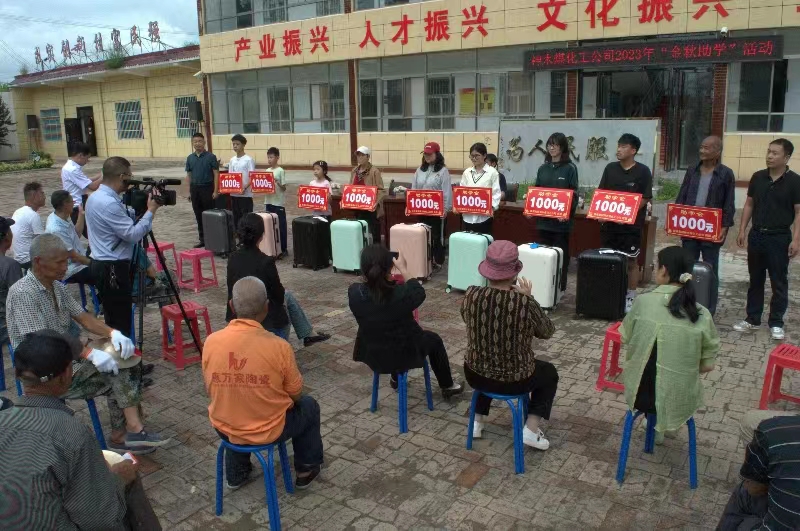 8月28日,神木煤化工公司在幫扶村侯家塬村開展2023年“金秋助學”活動,駐村工作隊代表公司向今年考取大學的9名學生每人發放了1000元助學金和拉桿箱一個。