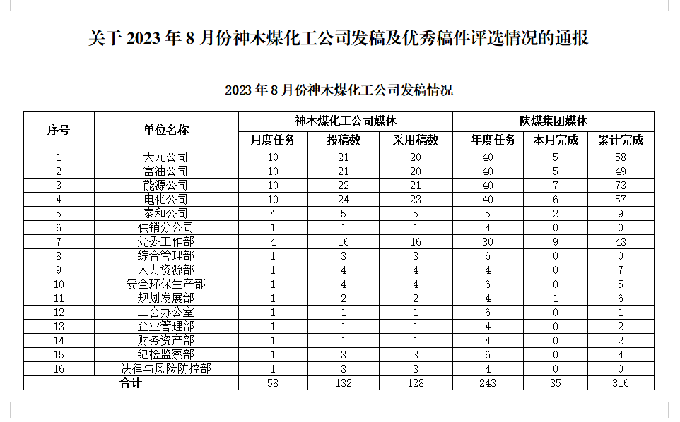 關于2023年8月份公司發稿及優秀稿件評選情況的通報