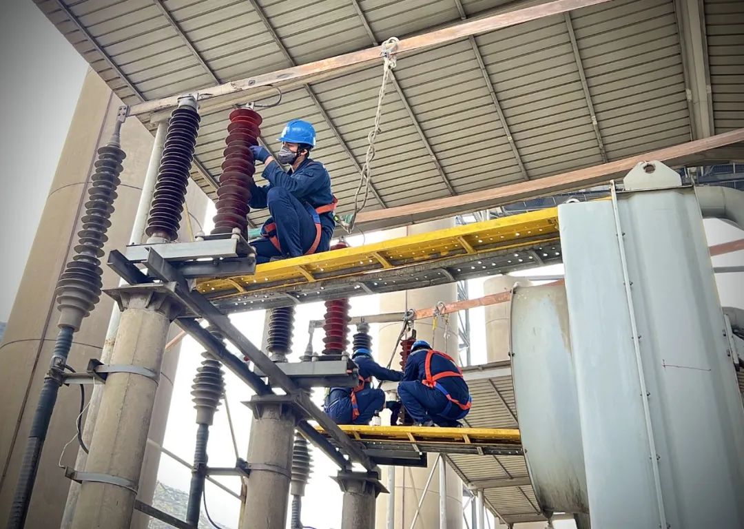 為了及時(shí)完成主變瓷瓶清掃檢修工作,近日,電氣檢修班提前制定檢修計(jì)劃,并做好人員分工,明確現(xiàn)場(chǎng)安全措施和危險(xiǎn)點(diǎn)。電氣運(yùn)行人員做好安全措施后,分別在#1主變中性點(diǎn)、避雷器、主變高低壓側(cè)瓷瓶、主變電流互感器、主變冷卻系統(tǒng)散熱片進(jìn)行分工協(xié)作,在主變頂部自上而下依次展開作業(yè)。