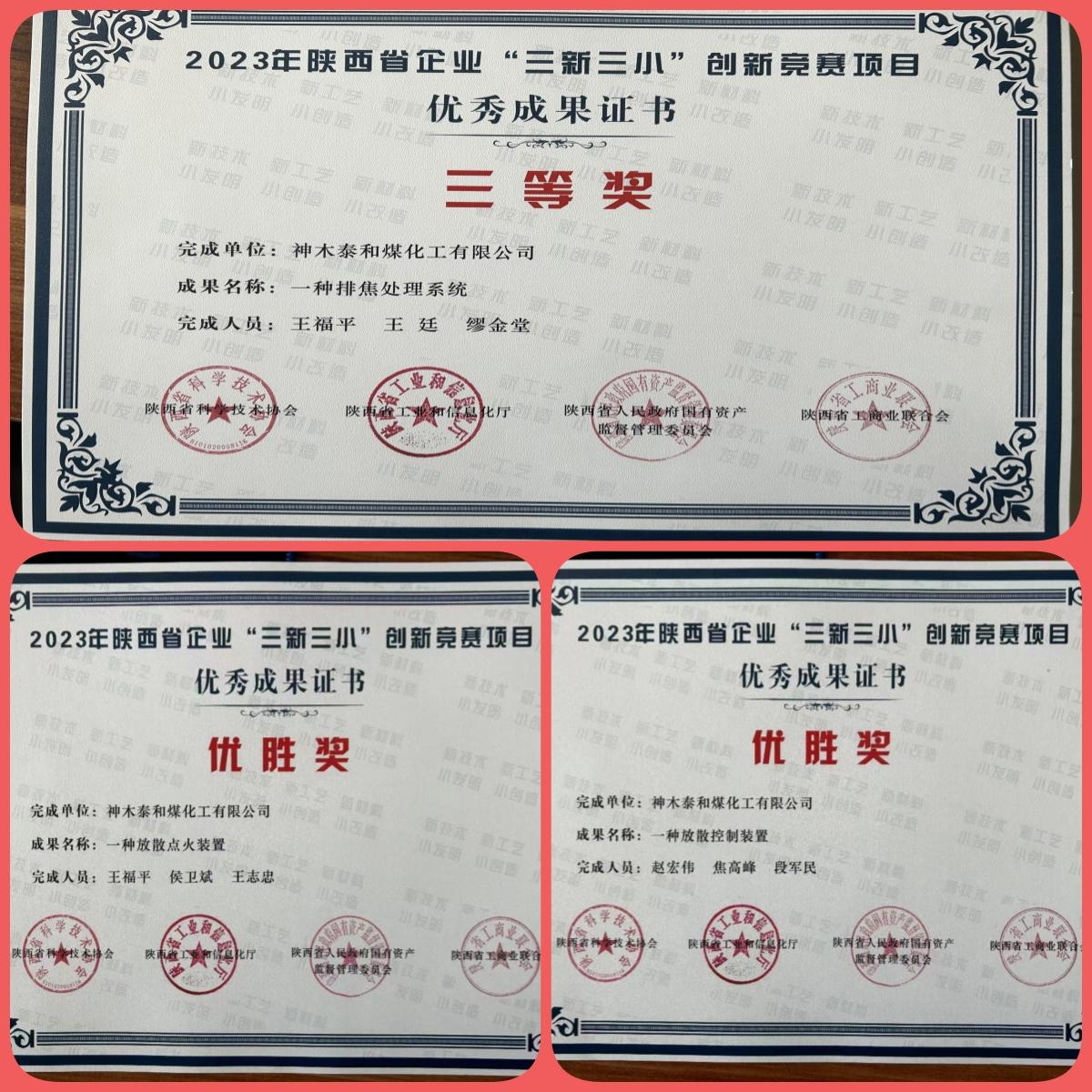 近日,2023年陜西省企業(yè)“三新三小”創(chuàng)新競賽活動評審結(jié)果正式公布,神木煤化工泰和公司“一種排焦處理系統(tǒng)”項目榮獲三等獎,“一種放散點火裝置”項目和“一種放散控制裝置”項目分別獲得優(yōu)勝獎。