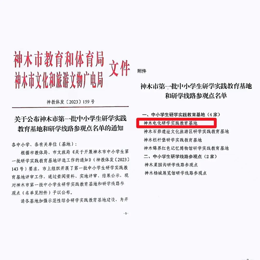 電化公司入選神木市第一批中小學(xué)生研學(xué)實(shí)踐教育基地名單