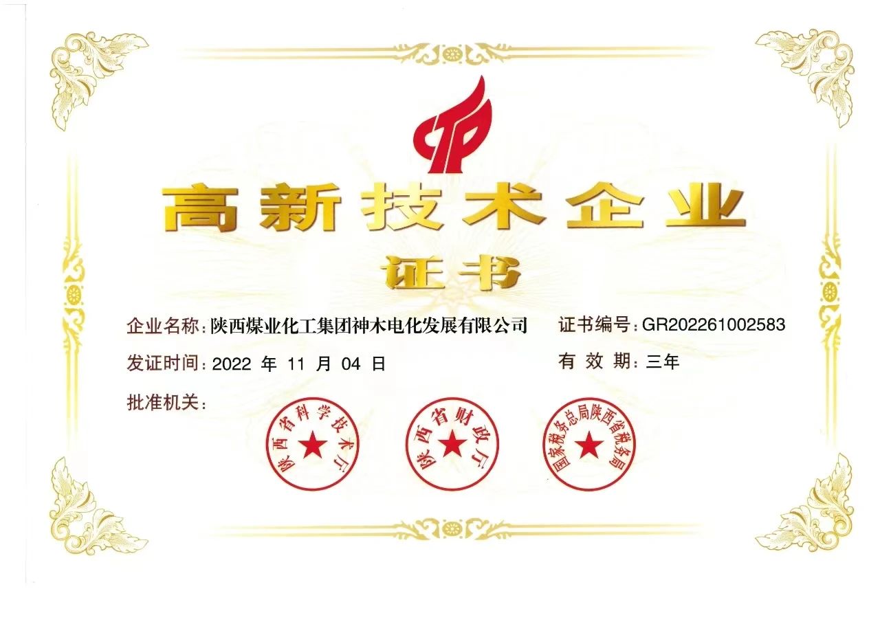 近日,電化公司收到神木市發展改革和科技局對2021年度和2022年度新認定秦創原高新技術企業政策獎補35萬元整。