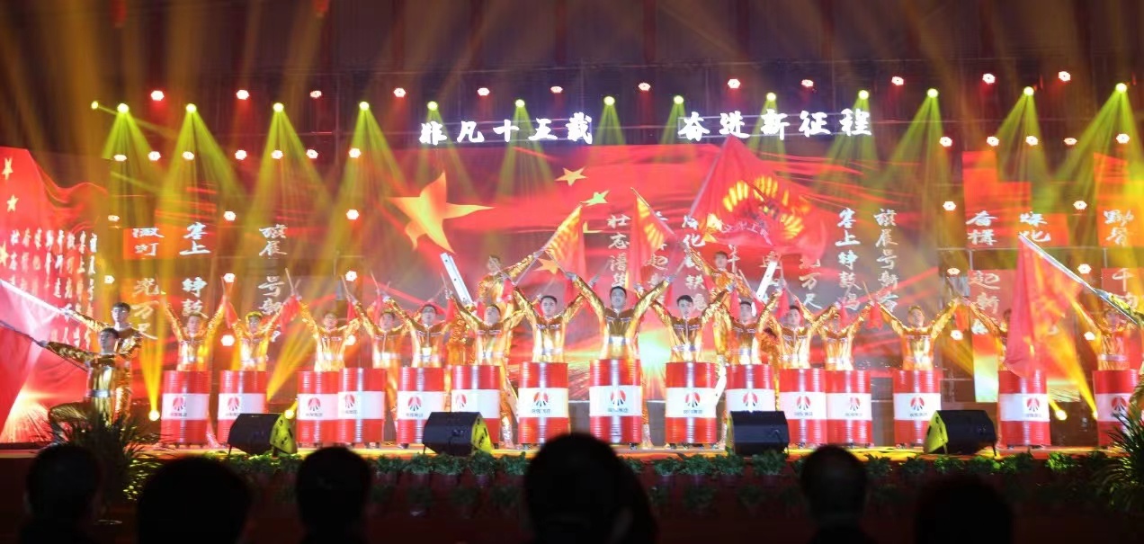 晚會(huì)在舞蹈《繁華似錦》中拉開(kāi)序幕。所屬各單位通過(guò)自編、自導(dǎo)、自演的方式,分別表演了精彩的文藝節(jié)目,有舞蹈《站在草原望北京》《奮進(jìn)新征程》,歌伴舞《就戀這把土》《奧維范兒》,朗誦《我驕傲我是陜煤人》《十五年奧維 風(fēng)雨兼程》和歌曲《節(jié)日歡歌》,此外還有相聲《生財(cái)之道》、小品《如此招聘》和陜北說(shuō)書(shū)《禮贊陜煤》等節(jié)目。在毛澤東同志誕辰130周年之際,公司職工以演奏紅色歌曲的形式,深切緬懷偉人的豐功偉績(jī),向偉人致以崇高的敬意。悠揚(yáng)的樂(lè)曲、動(dòng)聽(tīng)的歌聲、優(yōu)美的舞姿,還唱出了黃土高原的逶迤起伏和黃河水的洶涌澎湃,唱出了神木煤化工人十五載砥礪奮進(jìn)的豪情壯志和對(duì)未來(lái)的無(wú)限憧憬,同時(shí)表達(dá)了對(duì)公司和集團(tuán)公司未來(lái)發(fā)展的深深祝福與美好祝愿。