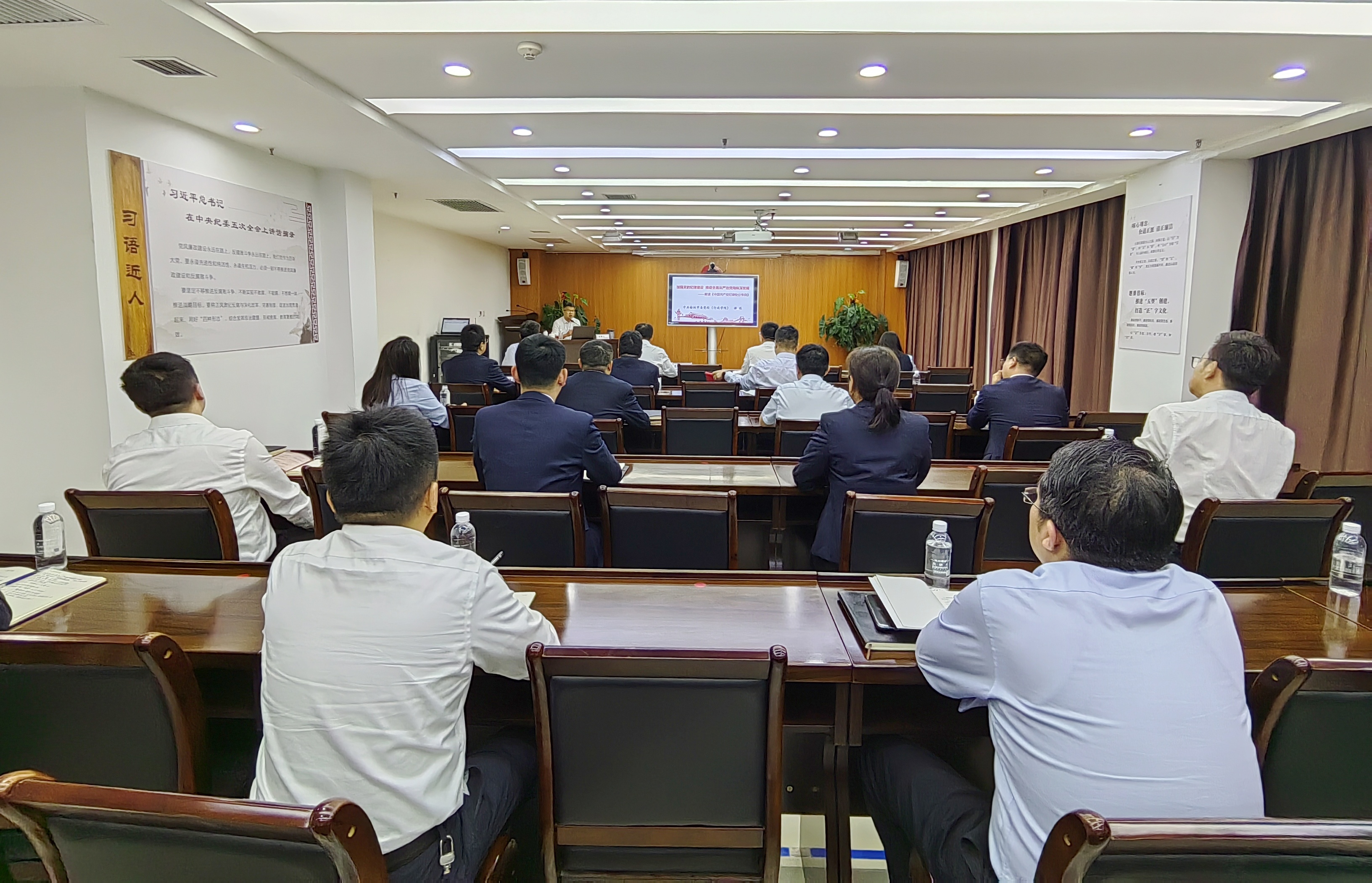 5月11日,公司開展中層管理人員黨紀學習教育專題輔導,教育引導黨員干部學紀知紀明紀守紀,始終做到忠誠干凈擔當。公司機關中層管理人員、經理助理、紀委全體人員在主會場參加專題輔導,所屬各單位班子成員、中層管理人員以及公司外派干部以視頻形式參加專題輔導。