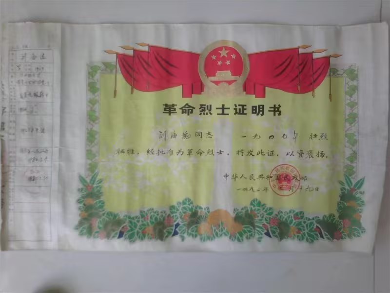 一張烈士證明書,靜靜趟在歲月的長河里,任憑他的后輩們去一代代頌揚,去緬懷!(白雪蓉)