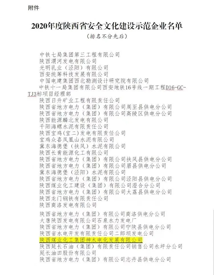近日,從陜西省應急管理廳發布的《關于命名2020年全省安全文化建設示范企業的通知》陜應急〔2021〕105號文件中獲悉,電化公司順利通過省應急管理與安全生產協會組織專家現場考核評定,榮獲“2020年度陜西省安全文化建設示范企業”稱號。