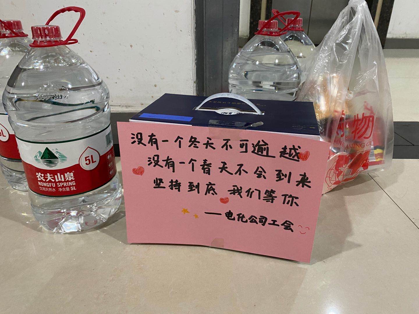 2月20日上午,電化公司黨委副書記、紀(jì)委書記、工會(huì)主席任建軍以及工會(huì)副主席賀文強(qiáng)等一行前去隔離區(qū)慰問隔離職工,并給他們送去一些生活必需品,讓隔離人員感受到大家庭的溫暖,增強(qiáng)隔離人員的“心理免疫力”,在隔離期間保持積極樂觀的心態(tài)。