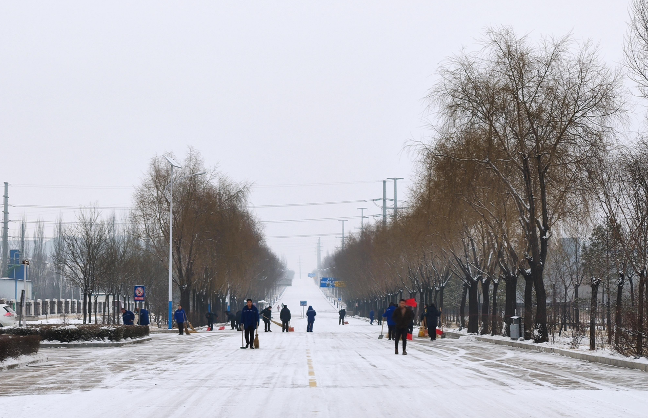 這首催眠曲,沒有將堅守在這里的一線煤化工人催眠,他們以雪為令,將路面上的積雪清掃干凈。這些小精靈,似乎與這里的煤化工人開著玩笑,悄悄的藏在他們的身后,在空中飛舞,在枝丫間撒著潔白的花瓣,在他們的身邊盤旋,在他們的耳邊低語,與他們捉迷藏,如花絮般,紛紛揚揚,又將清掃的路面悄悄地藏了起來,把大地瞬間變成了白色的海洋。