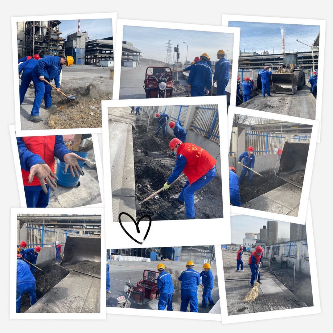 當(dāng)日下午兩點(diǎn)半,70多名青年志愿者在公司辦公樓前集合,由該工會(huì)主席帶隊(duì),分為4個(gè)小組對(duì)煤出磅房、煤進(jìn)磅房、原料出磅房和原料進(jìn)磅房進(jìn)行清掃。