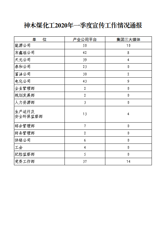 神木煤化工2020年第一季度宣傳工作通報(bào)