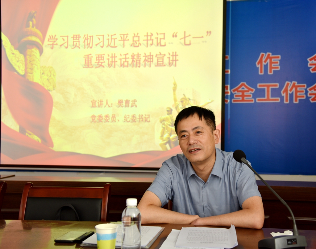 宣講團成員、公司黨委委員、紀委書記樊曹武作專題宣講,以習近平總書記“七一”重要講話的重大意義及全面建成小康社會的歷史成就等六個“深入領會”為主題,結合當前國際、國內、陜煤集團及神木煤化工公司的形勢進行分析解讀。