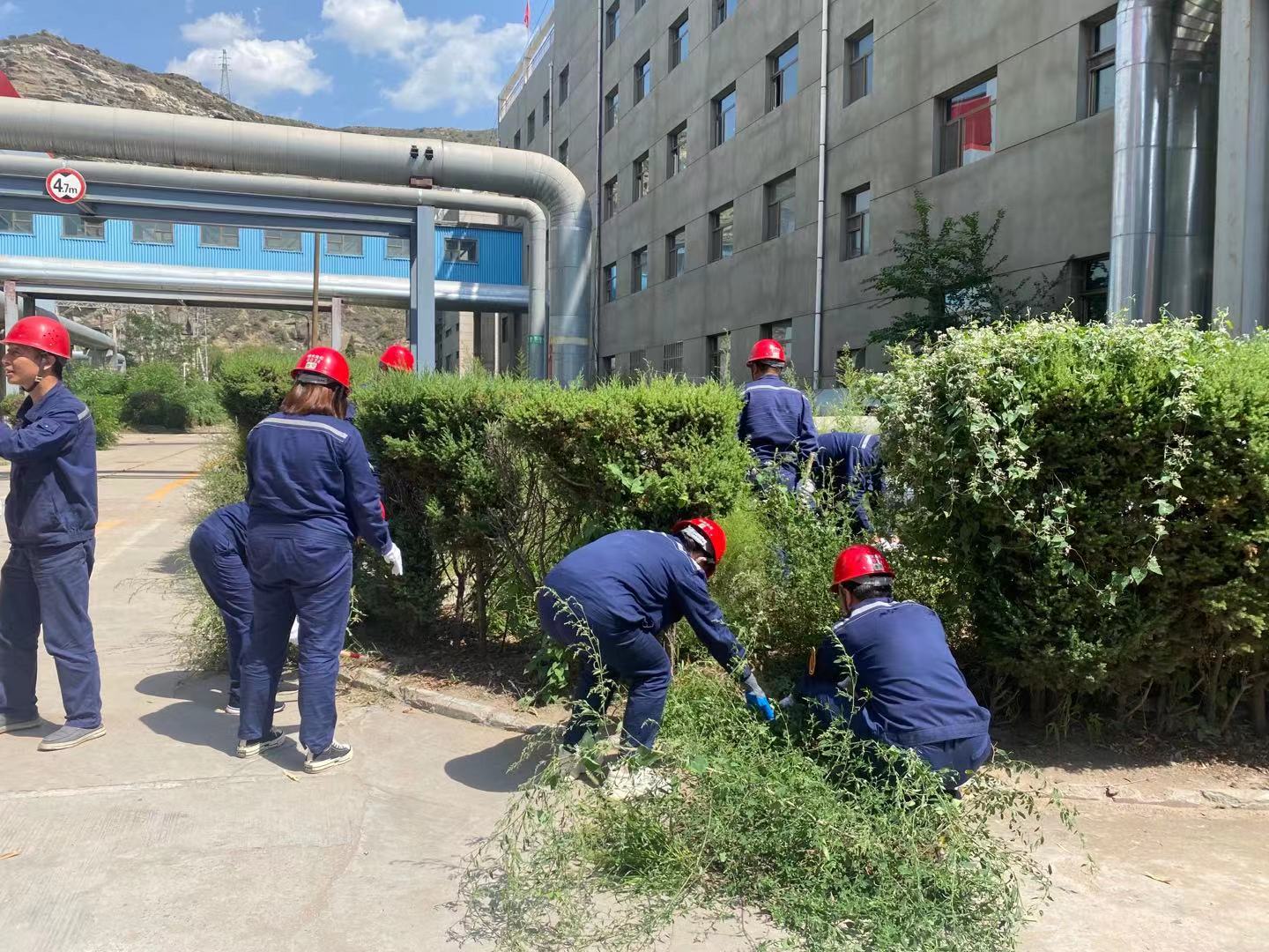 經(jīng)過一個夏天,電化公司行政樓附近綠化帶內雜草長勢迅猛。為進一步推進公司綠色工廠建設,打造一個清潔有序的工作環(huán)境,近日,電化公司全體行政部門干部職工開展除草活動。