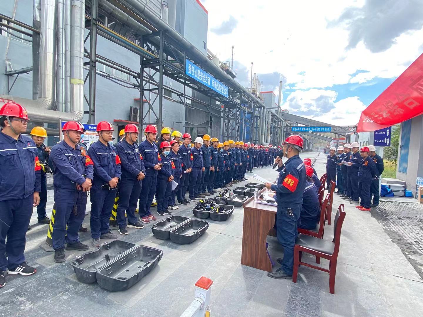 近日,神木煤化工電化公司在電石分廠緯二路開展2021年綜合應急演練,演練背景為模擬6#電石爐C相變壓器跳停著火,一人一氧化碳中毒心臟驟停現場救護。