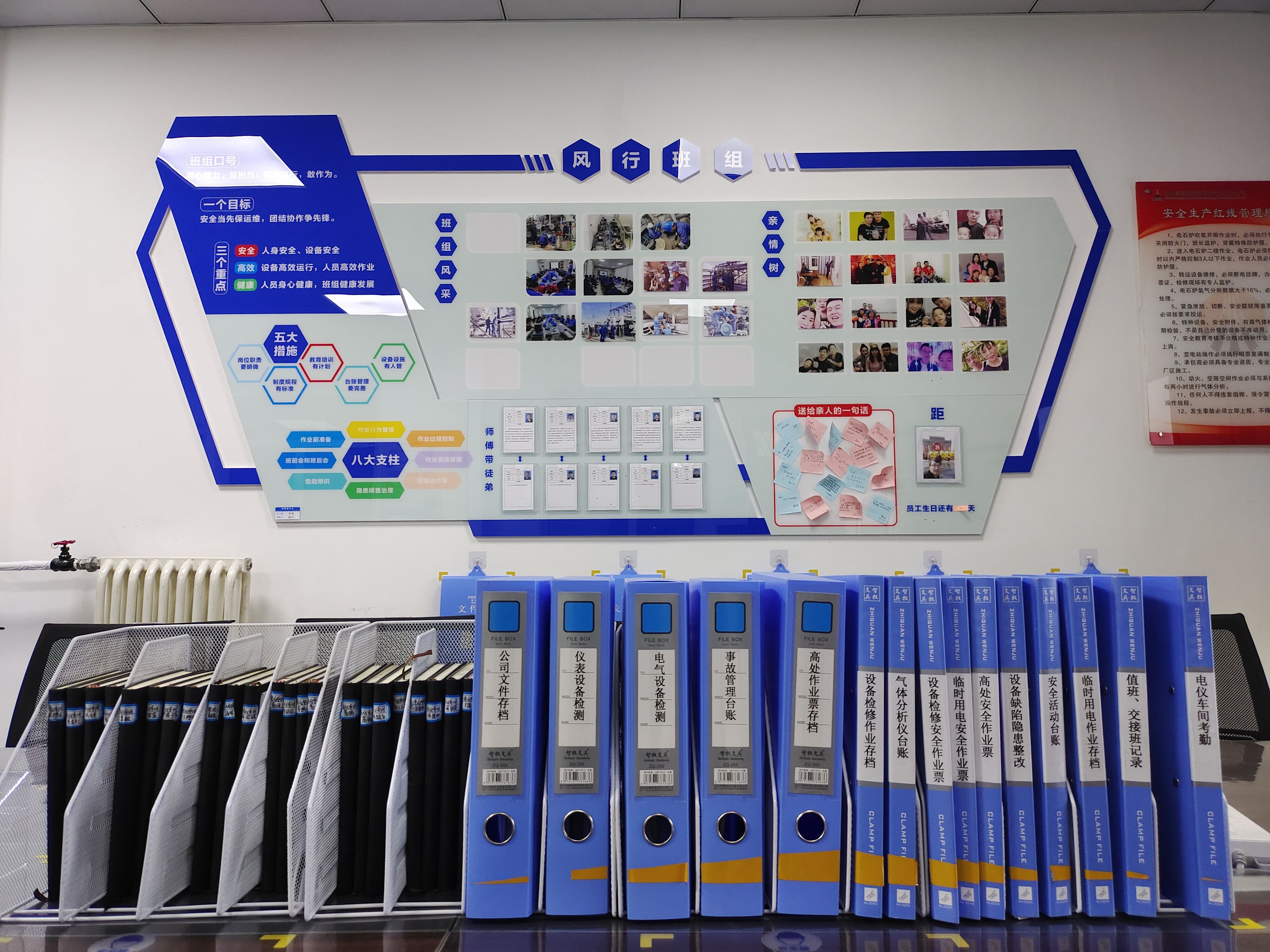 能源公司將電儀班組由卓越執行的“細胞群”打造成為以“凝心協力、顯擔當,雷厲風行、敢作為”為班組文化,“安全當先保運維,團結協作爭先鋒”為目標的標準化班組,開創實施了“黑、綠、紅”三色日事清管理模式,即:今日事今日清狀態顯示為黑色,今日事明日清為綠色,今日事擇日清為紅色,大幅提高了班組工作效率和成員主動性。同時,班組實施定置管理,所有物品“各歸其位”、定置擺放,使班組運營管理更加精益化,進一步加強了優化資源配置,做到用數據說話、用數據管理,促進運營管理效率提升。