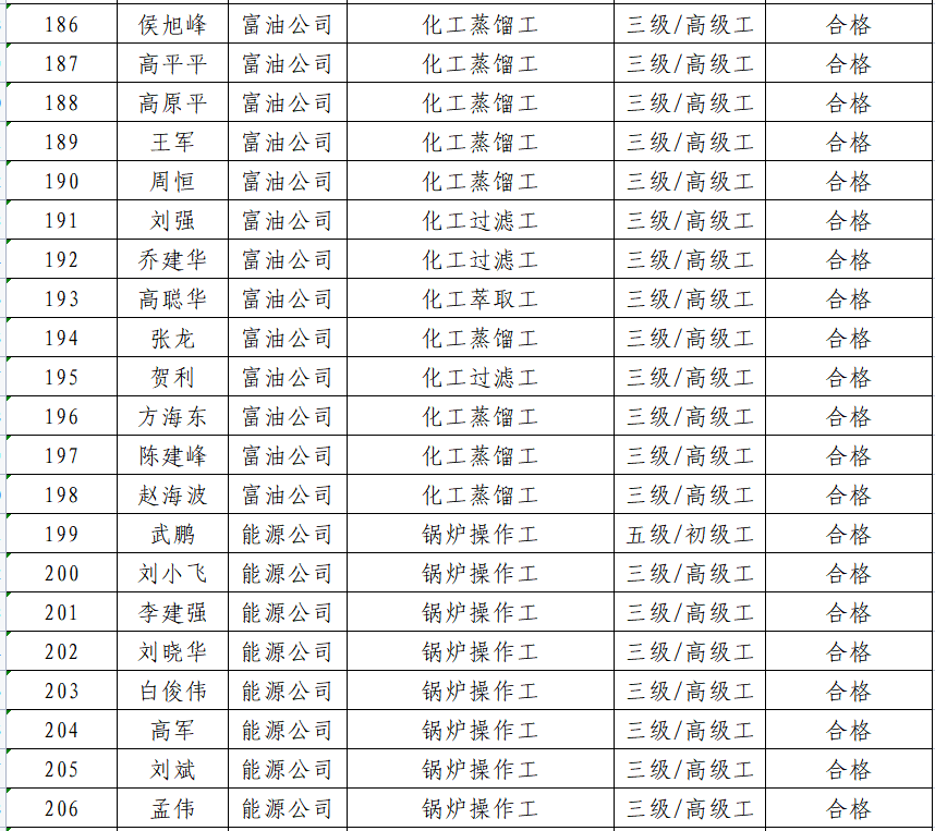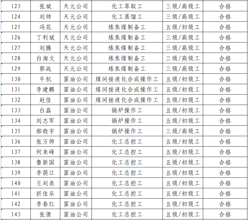 附件:神木煤化工公司2021年度職業(yè)技能等級認定初中高級擬通過人員名單