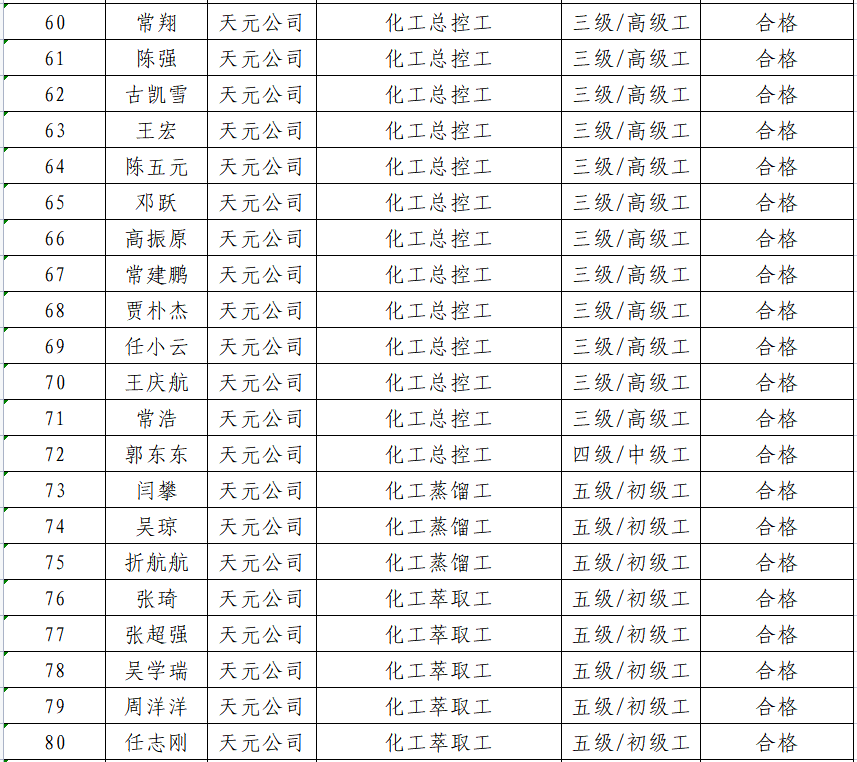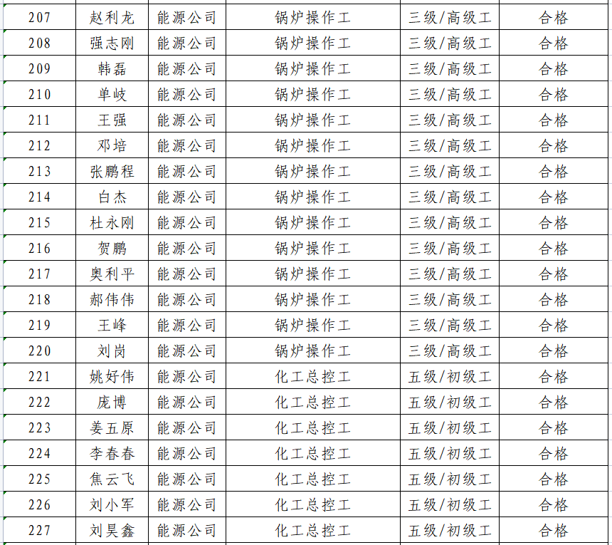 根據神木煤化工《關于開展2021年度職業(yè)技能等級認定工作的通知》(神煤化司發(fā)〔2021〕218號)文件安排,公司于10月21日至22日組織開展了2021年度初、中、高級職業(yè)技能等級認定考核,共366人參加,281人合格(其中:高級工159人,中級工1人,初級工121人)。現將擬通過人員名單進行公示: