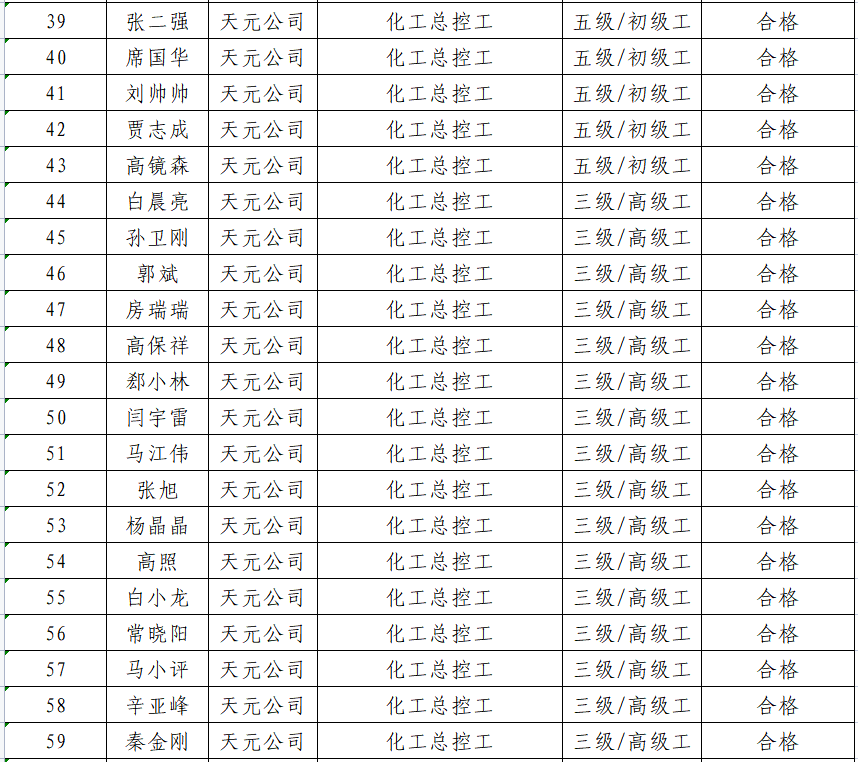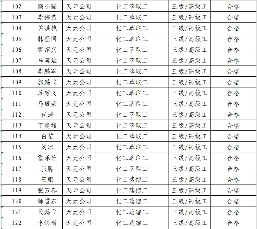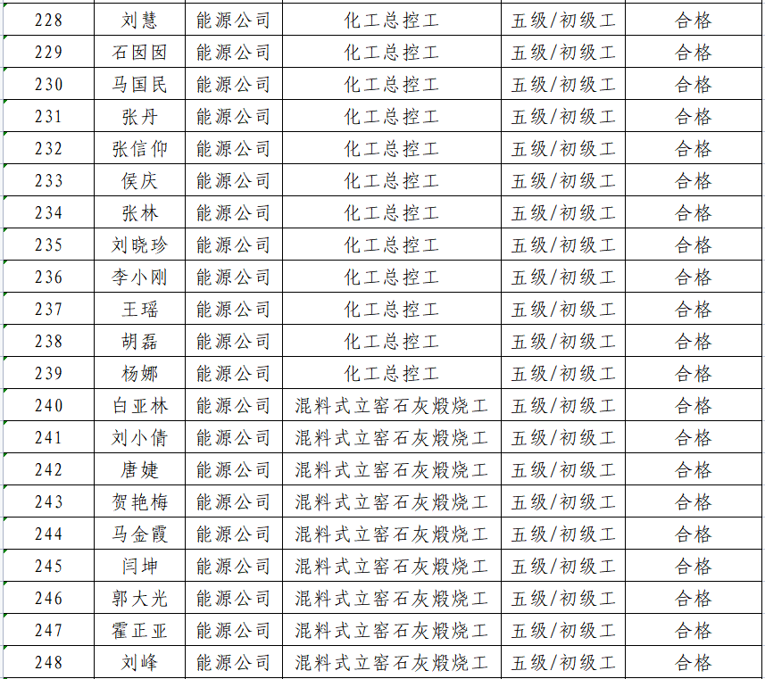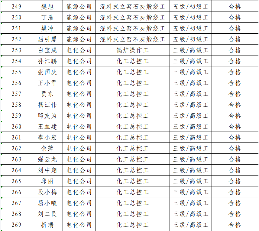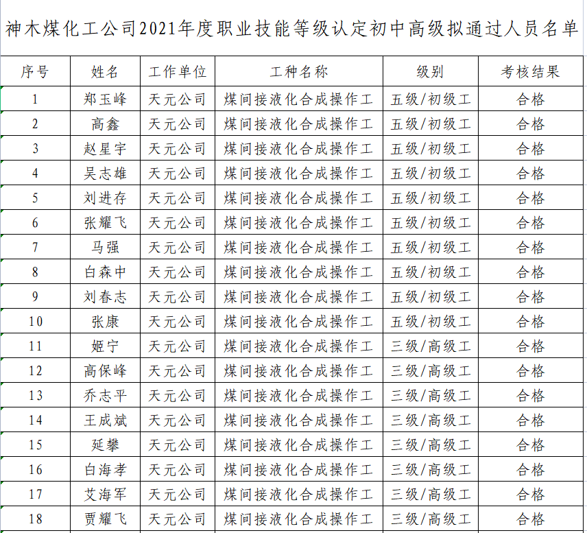 神木煤化工產業(yè)有限公司關于2021年度職業(yè)技能等級認定初中高級擬通過人員名單公示