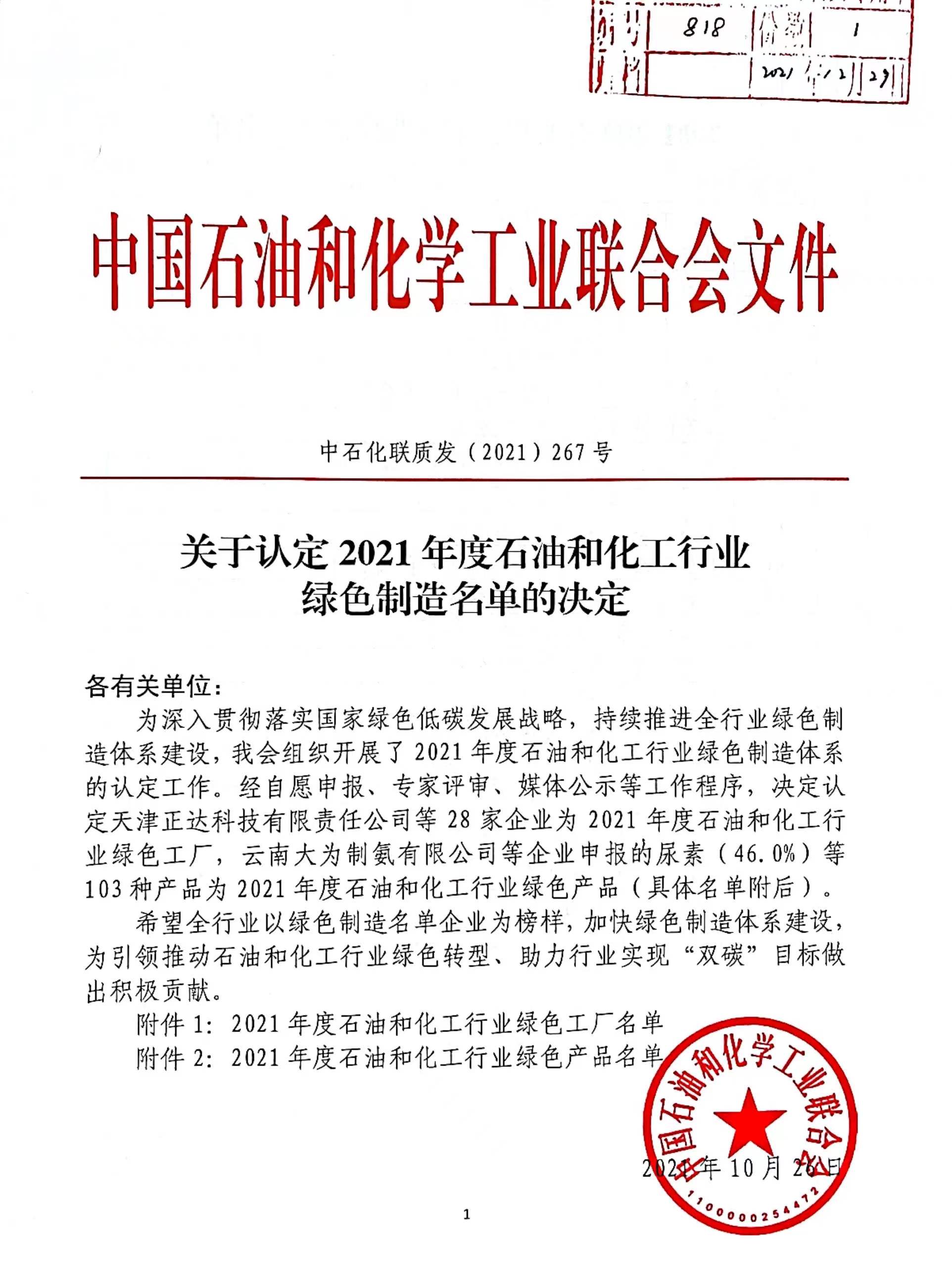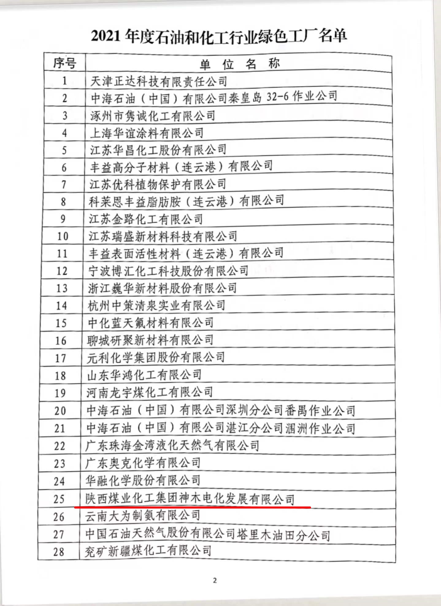 近日,中國石油和化學工業聯合會正式公布了2021年度石油和化工行業綠色工廠名單,神木煤化工電化公司獲得“2021年度石油和化工行業綠色工廠”稱號。