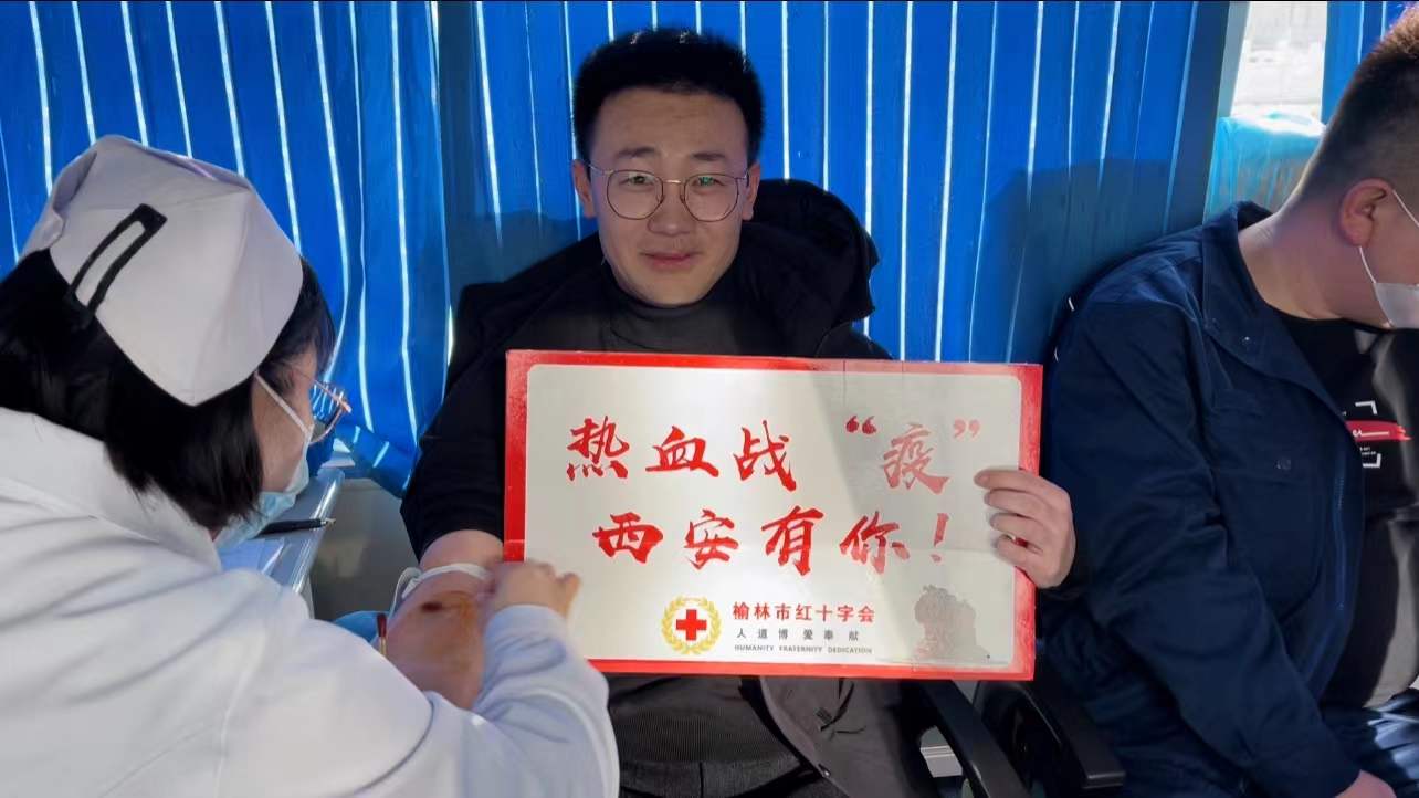 “作為一名共產(chǎn)黨員,能為西安的疫情防控做一點微薄的貢獻,我們義不容辭?!鄙衲久夯つ茉垂韭毠すM孝在愛心獻血現(xiàn)場說道。
