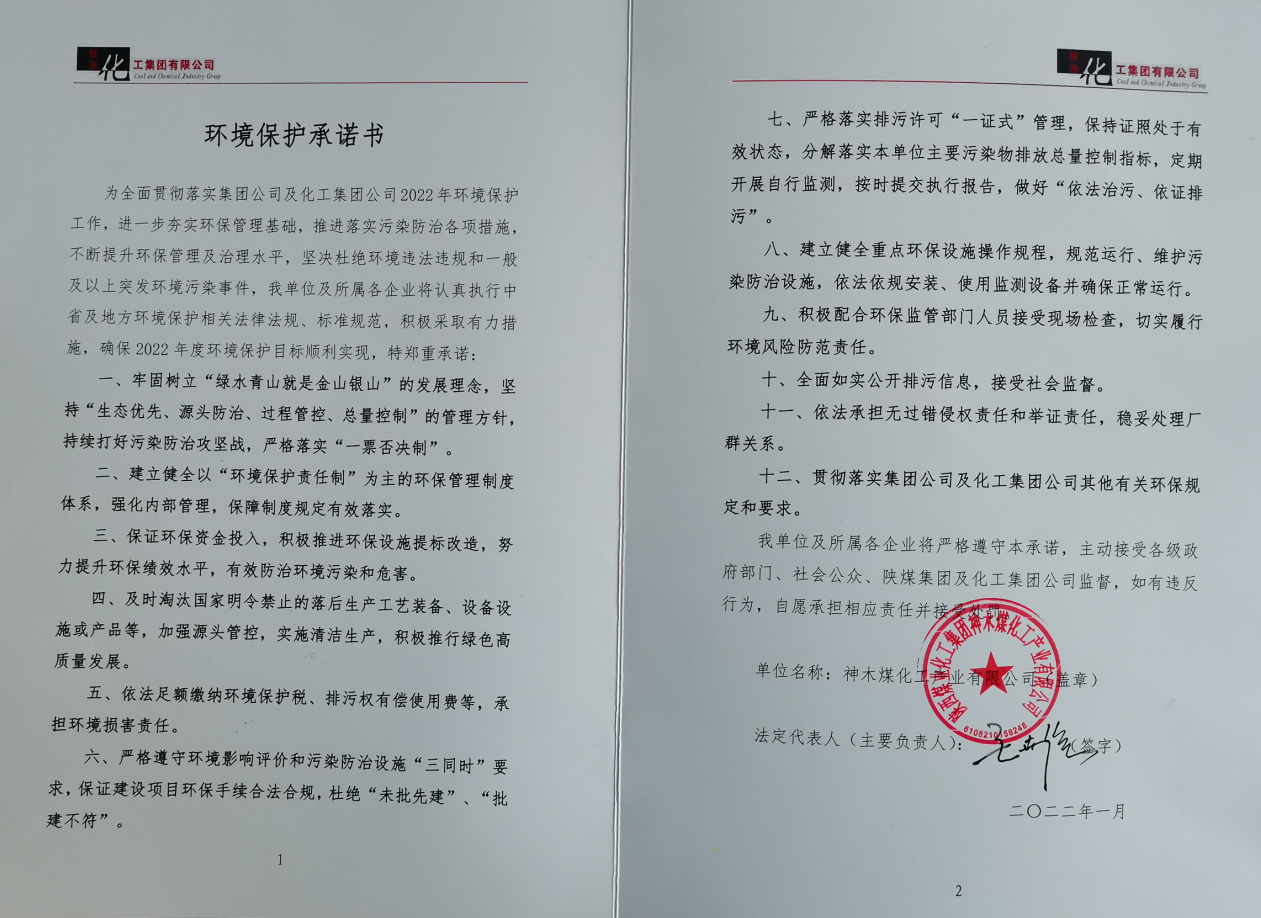 神木煤化工產業有限公司2022年環境保護承諾書公示