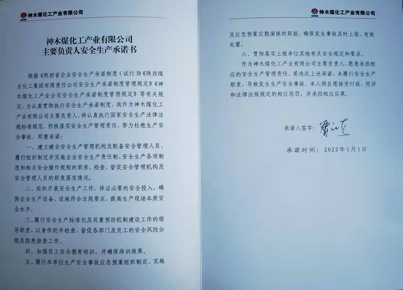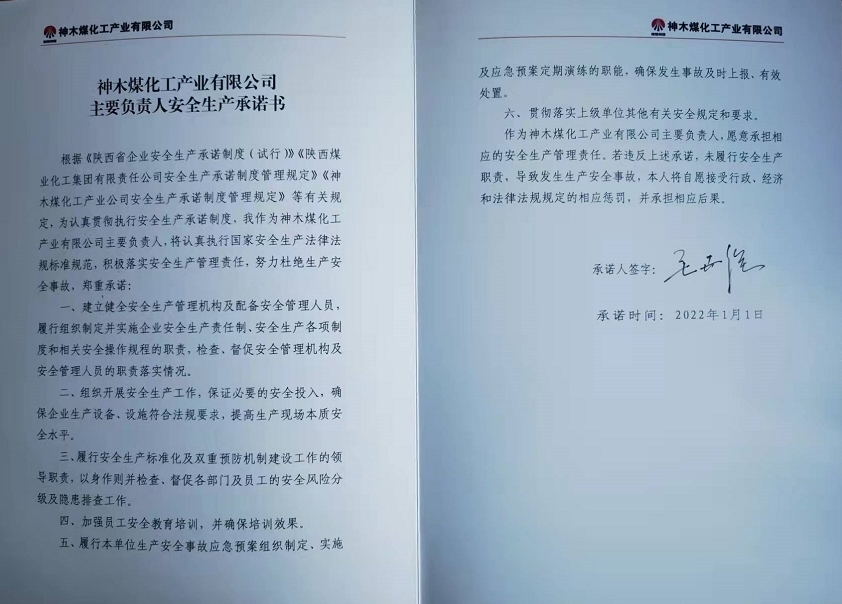 神木煤化工產(chǎn)業(yè)有限公司主要負(fù)責(zé)人2022年安全生產(chǎn)承諾書公示