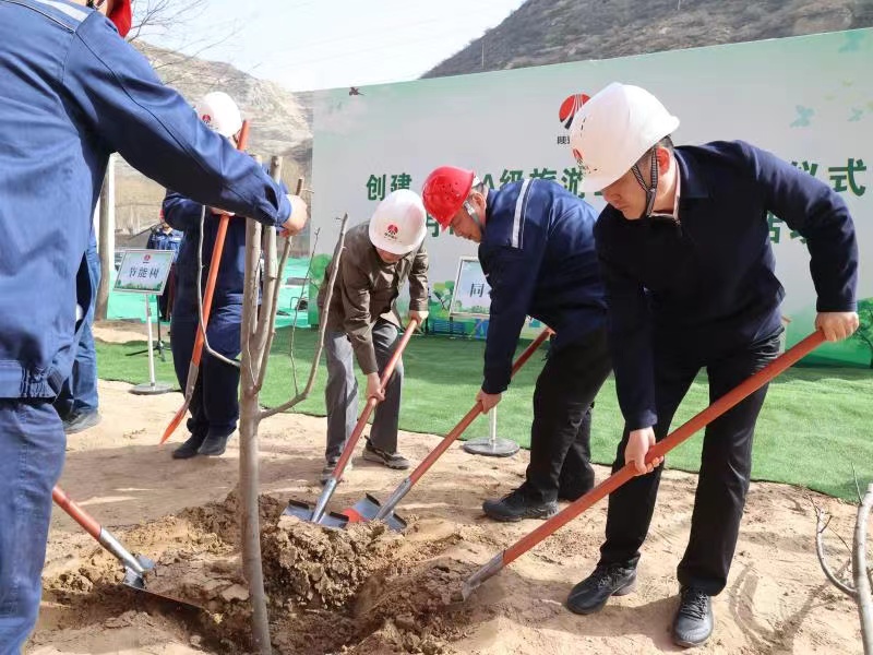 最是一年春光好,植樹添綠正當(dāng)時。3月12日,植樹節(jié)來臨之際,神木煤化工公司在所屬電化公司舉行創(chuàng)建“AAA級綠色旅游工廠”啟動儀式暨植樹節(jié)活動。神木煤化工公司班子成員以及所屬電化公司領(lǐng)導(dǎo)班子、中層管理人員、各黨支部黨員代表及青年志愿者等共計50余人參加儀式。