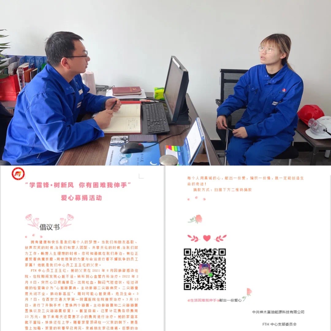 “你有困難我伸手”。人們常說平安是福,但往往世事難料,為幫助中心員工患病家屬,F(xiàn)TH中心黨支部真真實(shí)實(shí)地詮釋了“一人有難八方幫,共同援手顯真情”這句話。支部書記牛小強(qiáng)第一時(shí)間找到了王玉紅本人,了解其父親的治療情況、術(shù)后恢復(fù)情況,以及來公司近期的生活、工作情況,希望她能放下思想包袱,相信困難是暫時(shí)的,黨組織是她堅(jiān)強(qiáng)的后盾。并號(hào)召支部全體黨員、青年團(tuán)員向本中心職工王玉紅進(jìn)行愛心捐款。真情傳遞溫暖,愛心點(diǎn)燃希望,這次愛心捐款活動(dòng),體現(xiàn)了FTH中心黨支部對(duì)職工的溫情關(guān)懷,也體現(xiàn)了職工之間關(guān)愛互助的優(yōu)良風(fēng)范。