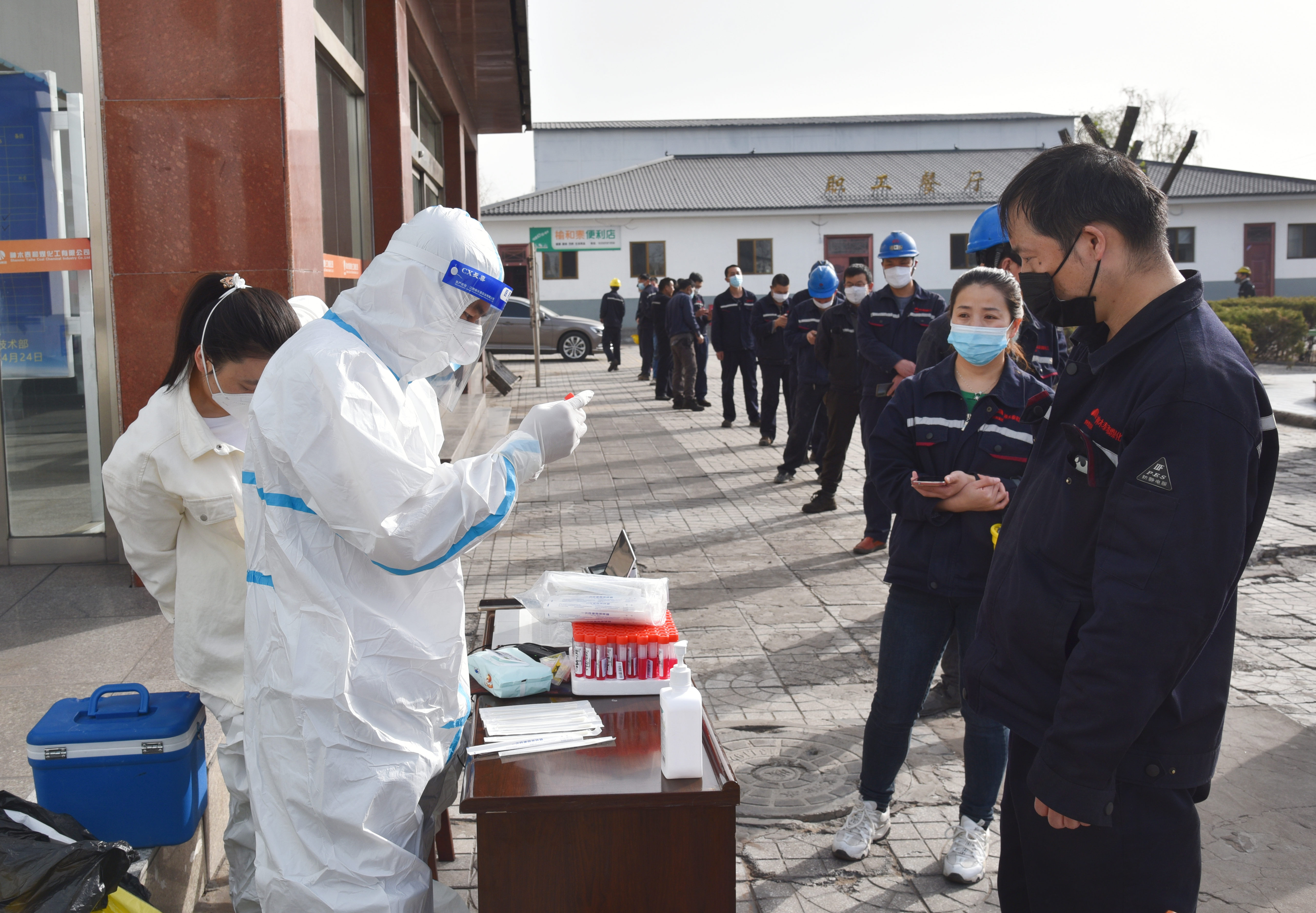 4月10日上午,神木煤化工泰和公司邀請神木市第二人民醫院的醫護工作人員對全體員工進行核酸檢測。
