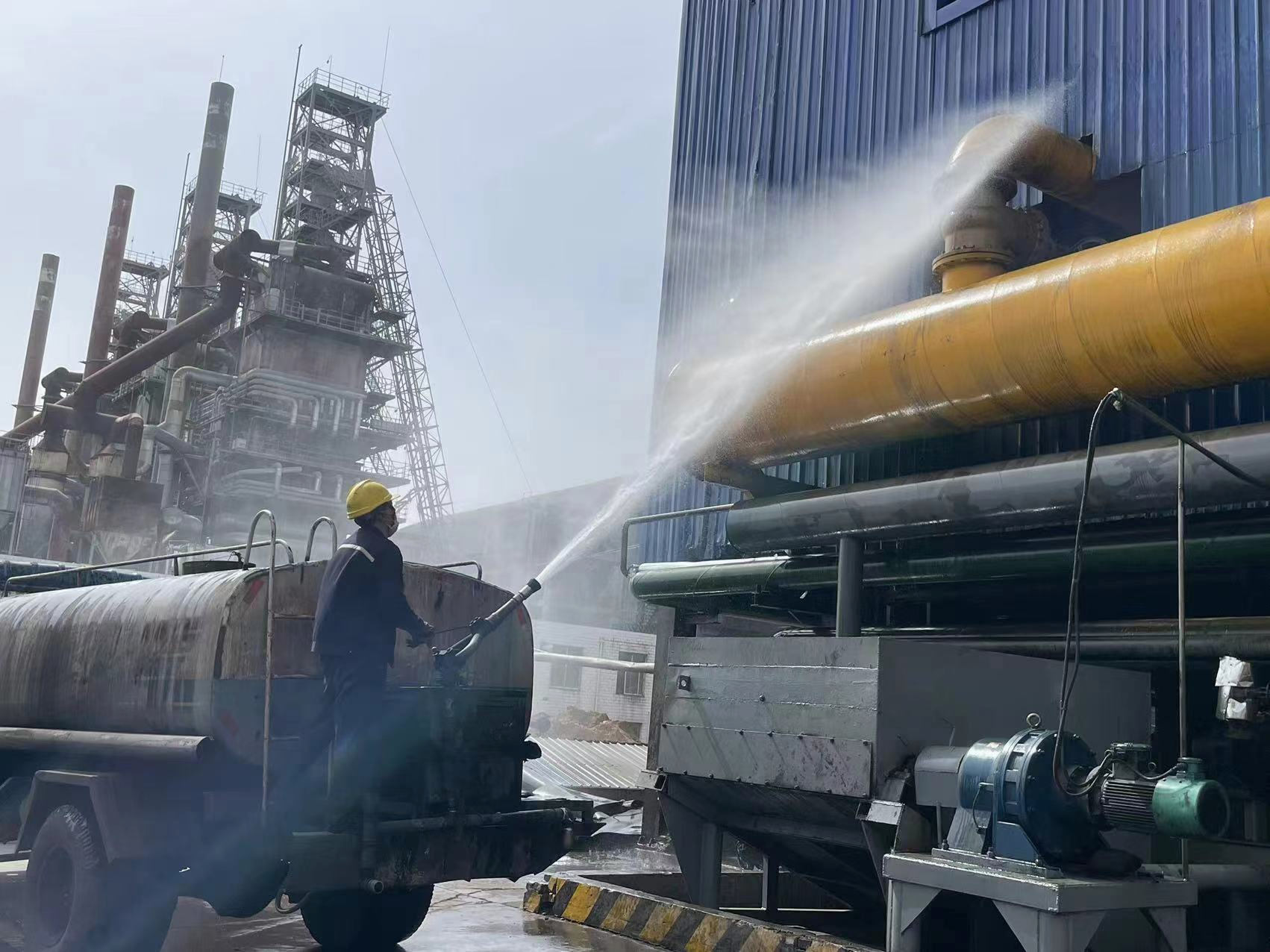 近日,神木煤化工泰和公司結合生產區域高空管線多、不易清洗的實際,利用灑水車對現場管線進行清洗作業,有效避免了人員高空作業可能產生的安全隱患,將靚化廠容廠貌融入到6S -CTPM管理。
