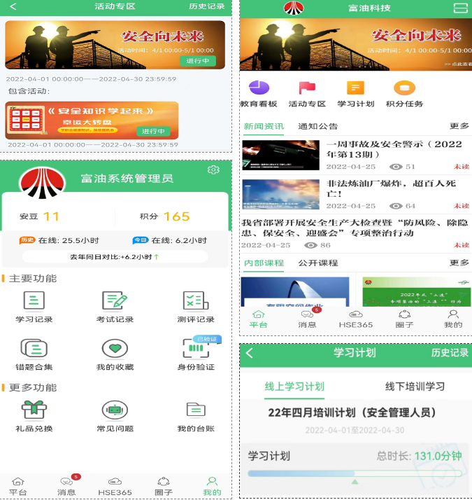 自應(yīng)急管理部發(fā)布《危險(xiǎn)化學(xué)品企業(yè)安全培訓(xùn)空間建設(shè)應(yīng)用指南(試行)》等重要文件以來(lái),富油公司堅(jiān)決秉持《安全培訓(xùn)空間》“先合規(guī)再增強(qiáng)”建設(shè)思想,扎實(shí)推進(jìn)安全培訓(xùn)內(nèi)容規(guī)范化、方式多樣化、管理信息化、方法智能化和監(jiān)管日常化,實(shí)現(xiàn)系統(tǒng)性、趣味性、針對(duì)性的安全培訓(xùn),以提高人員安全素質(zhì)的要求。在連續(xù)應(yīng)用HSE365平臺(tái)3年后再次啟用新功能,建成了以安全文化“橫向覆蓋”為培訓(xùn)主線,以安全能力“縱向深入”為空間建設(shè)重點(diǎn)的線上線下融合的數(shù)字化安全培訓(xùn)空間,含有線上安全學(xué)習(xí)網(wǎng)絡(luò)空間、培訓(xùn)信息管理空間、多媒體教室的線下培訓(xùn)物理空間。