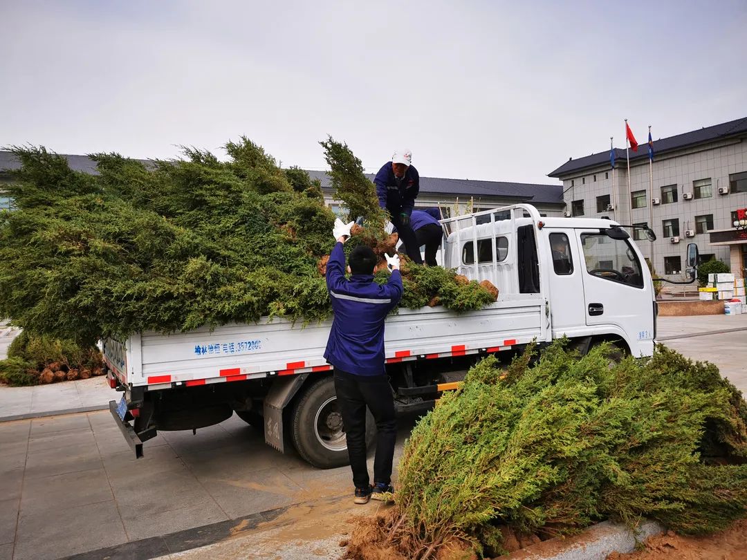 經(jīng)過連續(xù)幾天的的辛勤勞動,4000余株小圓柏迎風(fēng)挺立,為聯(lián)眾分公司增添了勃勃生機(jī)。(楊秋葉)